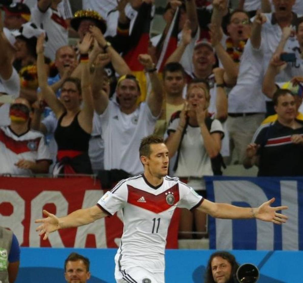 عادل النجم الألماني ميروسلاف كلوزه الرقم القياسي المسجل باسم الظاهرة البرازيلية المعتزل رونالدو، ليتساوى معه في صدارة هدافي بطولة كأس العالم على مدار التاريخ برصيد 15 هدفاً. وحل كلوزه بديلاً في الشوط الثاني لمباراة غانا في المجموعة السابعة مكان المهاجم الشاب ماريو جوتزه، ولم يمر على دخول مهاجم لاتسيو الإيطالي سوى دقيقتين، ليحرز هدفاً للماكينات تتعادل به مع غانا بهدفين لمثلهما. وافتتح كلوزه (35 عاماً) رصيده في المونديال بتسجيل 5 أهداف في كأس العالم 2002 بكوريا الجنوبية واليابان، ومثلها في مونديال 2006 في ألمانيا توج بها هدافا للبطولة، ثم 4 أهداف في البطولة الماضية بجنوب أفريقيا. في المقابل، سجل الظاهرة رونالدو 4 أهداف في مونديال فرنسا 1998، وتوج هدافاً لكأس العالم 2002 برصيد 8 أهداف، قبل أن يسجل 3 أهداف في آخر مونديال خاضه بألمانيا 2006.