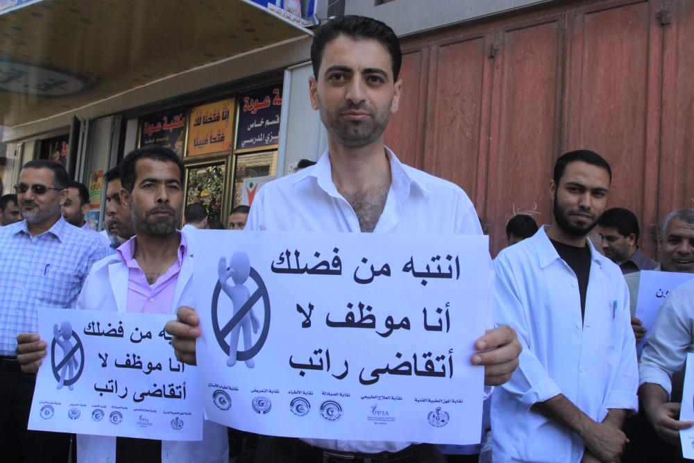 طالب موظفو المهن الصحية في حكومة غزة السابقة الرئيس الفلسطيني محمود عباس وحكومة الوفاق الوطني بضرورة صرف رواتبهم المتأخرة منذ شهور، خاصة مع اقتراب حلول شهر رمضان المبارك. ودعا الموظفون خلال وقفة احتجاجية نظمتها النقابات الصحية اليوم أمام مقر منظمة التحرير بمدينة غزة جميع أطراف المصالحة الوطنية بتحمل مسئولياتهم تجاه الموظفين الذين خدموا شعبهم في أحلك الظروف. وترفض حكومة الوفاق الوطني الاعتراف بموظفي حكومة غزة السابقة، إلى حين بدء عمل لجنة قانونية ورفع توصياتها بعد أربعة أشهر. ويبلغ عدد موظفي حكومة غزة السابقة نحو 50 ألف موظف، منهم 10 آلاف على بند البطالة، وتبلغ فاتورة رواتبهم نحو 35 مليون دولار. وحمّل نقيب الأطباء فضل نعيم الرئيس محمود عباس ورئيس الوزراء رامي الحمدالله المسئولية الكاملة عن تأخير صرف رواتب الموظفين بقطاع غزة، داعيا إياهم إلى العمل على صرفها فورا وقبل قدوم شهر رمضان. وقال نعيم في كلمته خلال الوقفة الاحتجاجية: "كنا نأمل أن تضع حكومة الوفاق قطاع غزة على سلم أولوياتها، ولكن للأسف تفاجأنا بأنها لا تعترف بـ40 ألف موظف كانوا ومازالوا على رأس عملهم، وخدموا شعبهم في أحلك الظروف". وأكد نقيب الأطباء أن نقابته ستقف في وجه أي سياسة تهدف إلى التمييز بين موظفي الحكومتين السابقتين، مشددا على أن جميع الموظفين هم موظفي دولة ولهم جميع الحقوق. وطالب نعيم أطراف المصالحة والموقعون على اتفاق الشاطئ الأخير يتحمل مسئولياتهم، وكشف ماهية الاتفاق الموقع. ووقعت حركة حماس ووفد منظمة التحرير الفلسطينية أواخر نيسان الماضي اتفاق "الشاطئ" ينص على البدء الفعلي بتطبيق اتفاق القاهرة عام 2011. [title]ديون ومسئوليات [/title] ويقول الطبيب في مستشفى كمال عدوان عصام نبهان إنه ومنذ 9 شهور ماضية لم يتلق راتبا كاملا من الحكومة، الأمر الذي زاد من الديون عليه والمسئوليات، ومما زاد الطينة بلة –بحسب نبهان- هو عدم اعتراف حكومة الوفاق بهم حتى اللحظة. وأضاف نبهان الذي يعيل خمسة أبناء لـ"صفا" "تفاءلنا كثيرا باتفاق المصالحة، ووضعنا الكثير من الآمال عليها، ولكن سرعان ما تلاشت تلك الآمال والأحلام بعد صرف حكومة الوفاق راتب موظفي رام الله دون موظفي غزة بالحكومة السابقة". وأكد أنه "وجميع الموظفين مع تشكيل لجنة قانونية تبحث أوضاعنا الإدارية، ولكن لا يعقل أن نبقى أربعة شهور متتالية دون راتب، خصوصا وأننا مقبلون على شهر رمضان والعيد وموسم المدارس، وكلها تحتاج إلى مصاريف كبيرة". واستعدت دولة قطر بدفع 20 مليون دولار شهريا للمساعدة في دفع رواتب موظفي غزة، الأمر الذي لم يتم حتى اللحظة، بعد تضارب الأنباء حول رفض وزارة المالية الفلسطينية استقبال الحوالة من قطر. [title]لا أمان وظيفي [/title] الممرض عبد الكريم السحار يؤكد أنه بات لا يأمن على مصيره الوظيفي، بعد تصريحات قادة السلطة والحكومة الأخيرة، التي لا تعترف بشرعيتهم. وقال السحار لـ"صفا": "نحن في وزارة الصحة نقدم خدمات إنسانية لشعبنا، ولا نستطيع ترك أعمالنا وترك أبناء شعبنا يموتون، ولكننا في الوقت ذاته لم نتلق راتبا كاملا منذ شهور طويلة، وأصبحنا نعاني كثيرا، ولا نجد ثمن المواصلات للعمل". وأوضح السحار أن قطاع غزة يعيش على الرواتب فقط، متسائلا "أين حقوقنا كموظفين؟ ومن يكفل مستحقاتنا؟". [title]أخدم شعبي [/title] بدوره، شدد الموظف في قسم الأشعة بوزارة الصحة سمير نعيم على ضرورة صرف رواتبهم المتأخرة في أسرع وقت ممكن، وفي غضون هذا الأسبوع، نظرا لقرب شهر رمضان المبارك. وقال نعيم لـ"صفا": "أنا لا أنتمي لحركة فتح أو حماس، إنما أنا موظف في وزارة الصحة وأخدم أبناء شعبي، ولا أرى أي مبرر لتأخير رواتبنا، لأن الوضع الاقتصادي في غزة صعب جدا ولا يحتمل المزيد". ودعا جميع القادة السياسيين إلى التعالي عن العناد والمناكفات السياسية والنظر إلى هموم المواطنين، وإعطائهم حقوقهم، وترتيب البيت الفلسطيني بدلا من وضع الملح على الجرح. وناشد نعيم الاتحاد الأوروبي والعالم الحر بالوقوف إلى جانب موظفي غزة، 