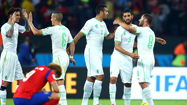 أصبحت الجزائر أول منتخب عربي أو افريقي يسجل أربعة أهداف في مباراة واحدة بنهائيات كأس العالم لكرة القدم. وتقدمت الجزائر برباعية لهدف على كوريا الجنوبية، قبل أن يقلص المنتخب الأسيوي الفارق إلى 4-2 مساء الأحد ضمن منافسات المجموعة الثامنة. وجاء الهدف الرابع للجزائر عن طريق ياسين براهيمي في الدقيقة 62 بعدما أحرزت أول ثلاثة أهداف في الشوط الأول بواسطة إسلام سليماني، ورفيق حليش، وعبد المؤمن جابو. وقبل أن تسجل الجزائر في مباراة الجولة الافتتاحية أمام بلجيكا لم يكن هذا المنتخب العربي أحرز أي هدف في كأس العالم منذ 28 عاماً. وخسرت الجزائر بهدفين لهدف أمام بلجيكا رغم التقدم بهدف نظيف في الشوط الأول.