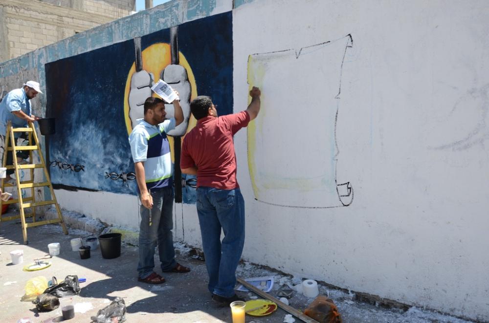 الفن التشكيلي يُعد جدارية تضامنًا مع الأسرى