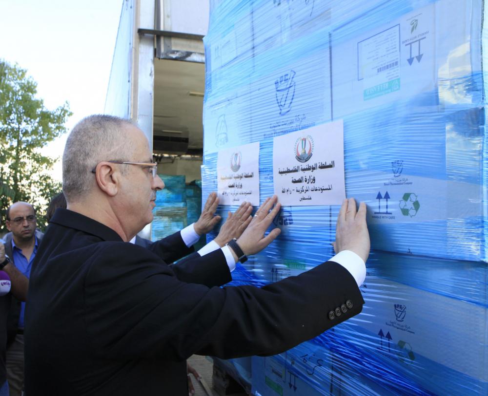 سيرت الحكومة الفلسطينية صباح الخميس 20 شاحنة من الأدوية والمستلزمات الطبية إلى قطاع غزة من المستودعات المركزية لوزارة الصحة في رام الله. وتضمنت الشحنة أدوية علاج السرطان، وزراعة الكلى، وأدوية للسكري والضغط، وحليب أطفال، ومواد مخبرية خاصة لسحوبات الدم، والعديد من الأصناف الأخرى، وتقدر قيمتها بـ2،317،000 شيكل. وحضر تسيير الشاحنات كل من رئيس الوزراء رامي الحمدالله ووزير الصحة جواد عواد، وقال رئيس الحكومة إن إرسال الأدوية إلى القطاع واجب وطني، رغم معيقات الاحتلال، والعراقيل أمام التزام الحكومة تجاه أبناء الشعب أينما تواجد. وتأتي الشحنة بعد تفاقم الأوضاع الصحية جراء النقص الحاد في الأدوية و المستهلكات الطبية والوقود بسبب الحصار الإسرائيلي على القطاع، ما دفع مستشفيات الوزارة بغزة لوقف العمليات الجراحية المجدولة وغير الطارئة.