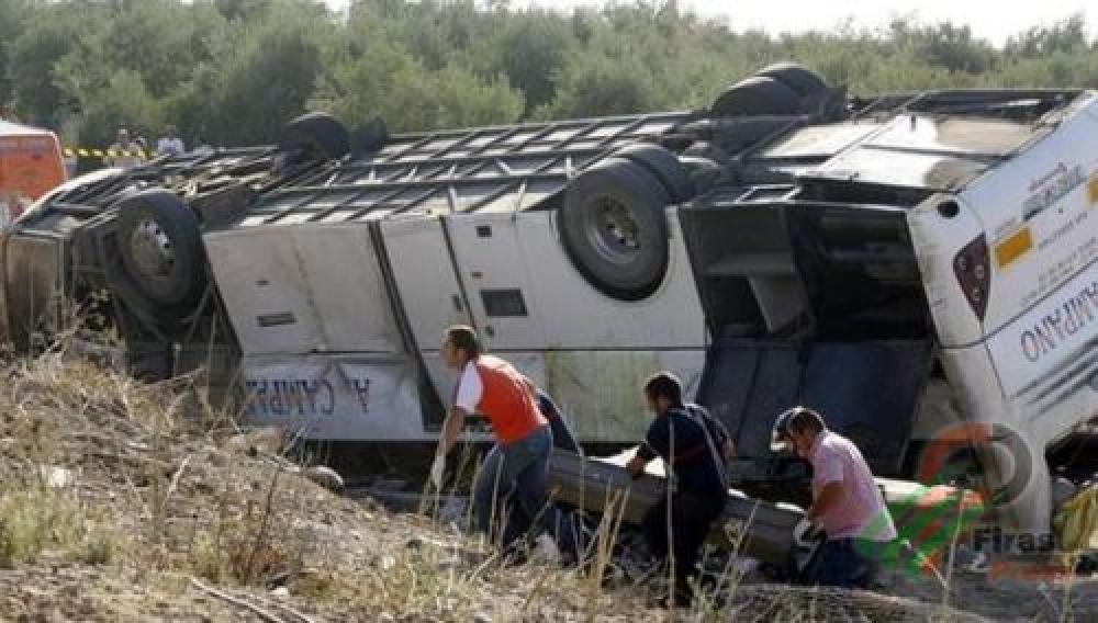 أصيب 30 مواطنًا هم كامل ركاب حافلة صغيرة إثر انقلابها جنوب محافظة بيت لحم بالضّفة الغربية المحتلة. وأفادت مصادر طبية لوكالة "صفا" أنّ الحافلة التي كانت تسير قرب قرية جورة الشمعة انقلبت على طرف الشارع واصطدمت بعامود كهرباء في المكان، ما أدّى إلى إصابة ركابها بجروح ما بين طفيفة ومتوسطة. وأشارت إلى أن ركاب الحافلة قادمين من معبر الكرامة، جرى نقلهم إلى مستشفيات الخليل وبيت لحم لتلقي العلاج اللازم لهم.