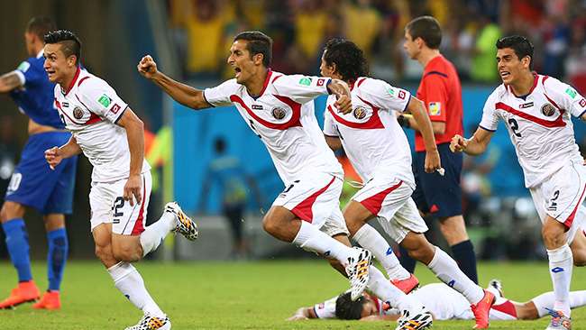 صعد المنتخب الكوستاريكي لدور الثمانية من بطولة كأس العالم 2014 المقامة بالبرازيل حالياً, إثر فوزه على نظيره اليوناني بركلات الترجيح 5-3, عقب التعادل بالوقتين الأصلي والإضافي بهدف لمثله, في المباراة التي جرت على ملعب "أرينا بيرنامبوكو" مساء الأحد, ضمن منافسات دور الستة عشر من المونديال. وتقدمت كوستاريكا عبر براين رويز في الدقيقة 52, قبل أن تخطف اليونان تعادلاً قاتلاً بالدقيقة 91 عن طريق سوكراتيس باباستاثوبولوس, علماً أن كوستاريكا أكملت المباراة بعشرة لاعبين بعد طرد أوسكار دوارتي في الدقيقة 66. وفي ركلات الترجيح، ابتسم الحظ لكوستاريكا بنتيجة (5-3), لتضرب موعداً مع هولندا في دور الثمانية. يشار إلى أن كوستاريكا تعدّ "الحصان الأسود" للمونديال حتى الآن, بعدما فازت على منتخبات عريقة في مقدمتها إيطاليا بهدف نظيف, وأوروجواي بثلاثية مقابل هدف واحد.