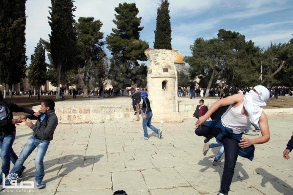 [q][/q]اندلعت صباح الثلاثاء اشتباكات بالأيدي بين المصلين وقوات الاحتلال الإسرائيلي في المسجد الأقصى المبارك، ما أدى لإصابة عددًا من المصلين، في حين فرضت الشرطة قيودًا على دخول المصلين إلى المسجد، ومنعت جميع النساء من دخوله. وتحاصر القوات الخاصة وضباط من الشرطة في هذه الأثناء عشرات الشبان المعتكفين داخل الجامع القبلي المسقوف، كما تقف على المداخل الأمامية للجامع، وسط حالة من التوتر الشديد تشهدها باحات الأقصى. وقال الناشط الإعلام في مؤسسة الأقصى للوقف والتراث أنس غنايم لوكالة "صفا" إن قوات الاحتلال منعت منذ ساعات الصباح من هم دون الـ35عامًا من الرجال من دخول الأقصى، كما منعت جميع النساء من كافة الأعمار. وذكر أن اشتباكات وتدافع بالأيدي وقعت بين المصلين وقوات الاحتلال، ما أدى لإصابة عددًا منهم، لافتًا إلى أن أعدادًا من المصلين يتواجدون داخل الأقصى في ظل انتشار مكثف لقوات وضباط الاحتلال في ساحاته. وأفاد أن نحو 13 مستوطنًا اقتحموا الأقصى منذ الصباح من جهة باب المغاربة وسط حراسة مشددة من قبل القوات الخاصة، وتجولوا في أنحاء مختلفة من باحاته. وأشار إلى أن أعدادًا كبيرة من المرابطين وطلاب مصاطب العلم يتجمهرون حاليًا خارج بوابات الأقصى، احتجاجًا على منعهم من دخوله، لافتًا إلى أن الوضع مرشح للتصعيد في أي لحظة. وأكد أن هذه الاعتداءات تأتي ضمن مسلسل يومي يحيكه الاحتلال بحق الأقصى والمصلين فيه في محاولة لثنيهم عن وجودهم فيه وحبهم ورباطهم داخله، وهو مقدمة لجعله ساحة خالية للمستوطنين فقط، ولكل من يريد انتهاك حرمته. وأضاف أن هذا يندرج ضمن إرهاصات مخطط التقسيم الزماني والمكاني للأقصى، ولكننا لن نقف مكتوفي الأيدي تجاه هذه السياسات، وسنبقى ندافع عنه بكل ما نملك. وناشد غنايم أهل القدس والداخل المحتل وكل من يستطيع الوصول التواجد في الأقصى خلال شهر رمضان المبارك وأيام الجمع، لكي يكون رسالة للاحتلال بأن "للأقصى حماة يدافعون عنه، وسينتصرون له". وكانت شرطة الاحتلال اعتدت الاثنين بالضرب والدفع على خمس مرابطات في المسجد الأقصى، ما أدى لإصابتهن بكسور ورضوض، وذلك خلال اقتحام المستوطنين للأقصى.