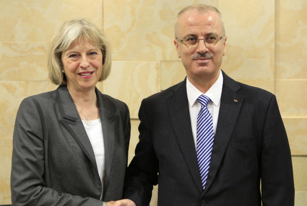 قال رئيس حكومة الوفاق الوطني رامي الحمد الله الثلاثاء، إن الكيان الإسرائيلي هو الدولة الوحيدة التي عارضت تشكيل حكومة الوحدة الوطنية، حيث أن المجتمع الدولي اعترف بها ودعم تشكيلها". وذكر الحمدالله أن الحكومة شكلت لجنة فنية إدارية وقانونية للعمل على دمج عمل الوزارات بين الضفة الغربية وقطاع غزة، لضمان تقديم أفضل الخدمات للمواطنين الفلسطينيين في جميع المحافظات. جاء ذلك خلال لقائه مع وزيرة الداخلية البريطانية تيريزا ماي والوفد المرافق لها، في مقر رئاسة الوزراء في رام الله، حيث أطلعها على أخر تطورات العملية السياسية. وشدد الحمدالله على تمسك الفلسطينيين بحل الدولتين، وصولا إلى دولة فلسطينية مستقلة على حدود عام 1967، وعاصمتها القدس، مشددا على دعمه للمقاومة الشعبية السلمية. من جانبها أكدت ماي على أن المجتمع الدولي وبريطانيا ملتزمون بعمل كل ما يلزم لتحقيق السلام في المنطقة، معربة عن سعادتها لزيارة الكلية العسكرية المدعومة من الاتحاد الأوروبي في مدينة أريحا.