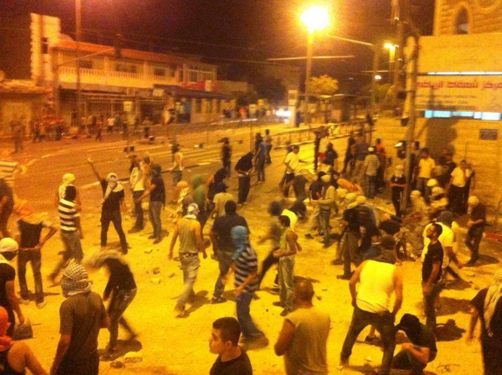 أصيب 200 مواطن بالرصاص المطاطي وشظايا قنابل الغاز والصوت في مواجهات لا تزال مستمرة مع الاحتلال الإسرائيلي بأحياء وبلدات وقرى مدينة القدس المحتلة، عقب استشهاد الفتى محمد أبو خضير (17عامًا) على يد المستوطنين صباح أمس. وأفادت مصادر طيبة محلية أنه وحتى ساعات مساء اليوم أصيب ما يزيد عن 200 مواطن بكسور وجروح، بسبب القنابل الصوتية والأعيرة المطاطية. وأشارت إلى أن معظم الإصابات عولجت ميدانيا، ونقلت حالات إلى المستشفيات، لافتين إلى وجود 3 إصابات بكسور، كما تركزت الإصابات في منطقة الوجه والأطراف. وامتدت المواجهات إلى العديد من أحياء وضواحي القدس المختلفة واستخدم فيها شرطة الاحتلال الإسرائيلي الرصاص المطاطي وقنابل الغاز والصوت، فيما شملت بلدات سلوان والعيساوية وباب حذة ورأس العمود، وتجددت في شعفاط. وأشعل الشبان الإطارات المطاطية في الشوارع ووضعوا الحجارة لعرقلة سير الجيبات الإسرائيلية. فيما أكد أن الشرطة استدعت سيارة مدرعة لتفريق المتظاهرين بخراطيم المياه. ووجه ناشطون وحراكات شعبية في القدس دعوات لتشكيل لجان شعبية من أجل الدفاع عن الأحياء الفلسطينية من المستوطنين وجيش الاحتلال. وأضافوا أنه جرى إلقاء زجاجات حارقة على عدة بؤر استيطانية في قلب الأحياء الفلسطينية في المدينة. واحتشد المئات من أهالي مخيم شعفاط مساء اليوم في الشارع الرئيسي وأجبروا قوات الاحتلال على الانسحاب بعد أن تجددت بعد الإفطار المواجهات بين قوات الاحتلال وشباب المخيم في أعقاب إعدام الفتى محمد أبو خضير بأيدي مستوطنين. وقبل منتصف الليل بقليل تجددت المواجهات عند مدخل شعفاط من جهة بيت حنينيا، وألقى شباب المخيم الحجارة على قوات الاحتلال التي انتشرت في المكان. وقالت مصادر مقدسية إن الشبان أضرموا النيرات بالإطارات فيما جرى استدعاء سيارة تفريق المتظاهرين بالمياه، كما اندلعت مواجهات أيضًا في سلوان وبير أيوب وعين اللوزة في القدس. وأفادت أن المواجهات ما زالت مستمرة في قرية شعفاط منذ ساعات الصباح، مشيرة إلى أن قوات الاحتلال تطوق المنطقة التي أعلنتها منطقة عسكرية مغلقة. وبينت أن البلدة القديمة، وأحياء عديدة من بلدة سلوان، وحاجز مخيم شعفاط، والعيسوية، وجبل المكبر، والعيزرية في القدس، والطور، تشهد مواجهات مع الاحتلال في إطار ردات الفعل على استشهاد الفتى أبو خضير.