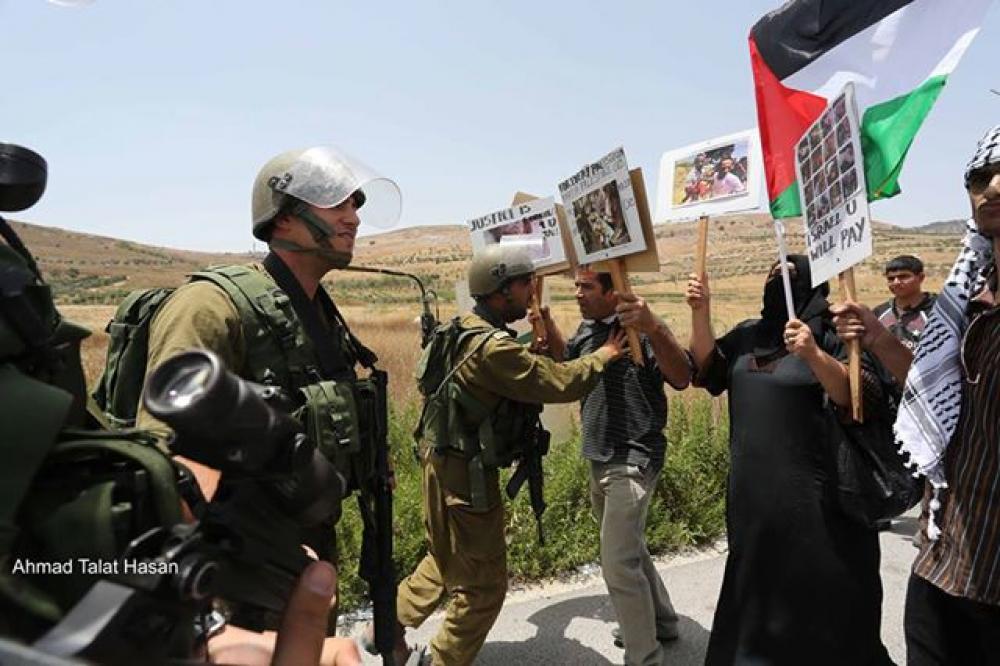 نظم عدد من النشطاء في مدينة نابلس شمالي قطاع غزة مسيرة راجلة توجهت نحو حاجز حوارة العسكري جنوبي المدينة، تضامنا مع قطاع غزة الذي يتعرض لحرب إسرائيلية شرسة منذ ستة أيام. ورفع المشاركون في المسيرة أعلام فلسطين، وصور الشهيد محمد أبو خضير، وصور ولافتات تضامنية مع غزة، وهتفوا بشعارات التضامن والمناصرة لقطاع غزة. وفور وصول المسيرة للحاجز العسكري اعترض جنود الاحتلال المشاركين فيها وأرجعوهم بالقوة بعد محاولتهم المضي قدما والاقتراب أكثر نحو الحاجز. وتشهد مدن الضفة الغربية حراكا شعبيا تضامنيا مع قطاع غزة، مع وجود إعاقات وقمع من قبل الاحتلال وأجهزة السلطة الفلسطينية لتلك المسيرات.