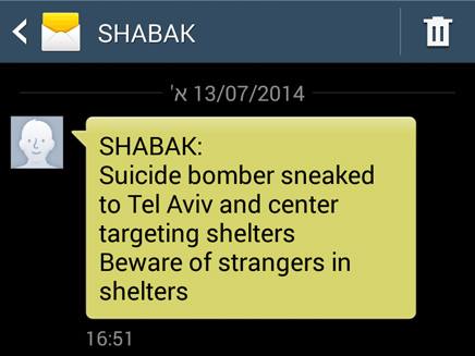 قالت القناة العبرية الثانية إن مجموعة من الهاكر التابعين لحماس أرسلوا رسالة لآلاف الهواتف الإسرائيلية على أنها من الشاباك حيث قالوا فيها إن فلسطيني يحمل حزاماً ناسفاً وصل إلى وسط تل أبيب وهدفه القيام بعملية تفجيرية ضد الإسرائيليين الذين يمكثون في الملاجئ. وانتهت الرسالة المحررة باللغة الإنجليزية بتحذير المواطنين من الدخول للملاجئ . وكانت رسالة أخرى قد وصلت قبل ظهر اليوم على أنها من الجبهة الداخلية الإسرائيلية تدعو السكان لالتزام الملاجئ الساعة الثانية عشرة ظهراً لأن حماس ستبدأ هجوماً عنيفاً على "إسرائيل" وذلك في أعقاب قيام الجيش بتدمير ممنهج للمباني شمالي القطاع . في حين نفت الجبهة الداخلية إرسال أية رسائل بهذا الخصوص وحذرت الإسرائيليين من التعاطي معها. وأبرزت المقاومة قدرات متقدمة في معركة التأثير النفسي والإعلامي مع الاحتلال بعد أن وصلت رسائل كتائب القسام والمقاومة إلى معقل الإعلام الاسرائيلي بوسائله المختلفة، ونجحت في التشويش عليه واختراق حسابات إلكترونية لشخصيات سياسية وحكومية وإعلامية. وحذرت تلك الرسائل من ردة فعل المقاومة مما يجري من عدوان إسرائيلي على قطاع غزة، كما أصابت تكتيم الاحتلال الإعلامي على خسائره بمقتل بعد أن عرضت لقطات فيديو موثقة لضربات المقاومة الموجعة له.