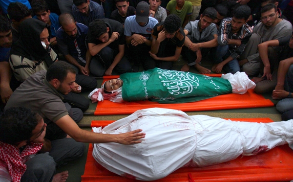 قال "المرصد الأورومتوسطي لحقوق الإنسان" ومقره جنيف إن 15 مواطنا استشهدوا بينهم طفلين في اليوم السابع للعدوان الإسرائيلي المتواصل على قطاع غزة. وذكر المرصد في تقريره اليومي عن مستجدات العدوان الإسرائيلي، أن إجمالي عدد الشهداء ارتفع إلى 182 منذ إعلان بدء عملية "الجرف الصامد" العسكرية، منهم 39 طفلا و24 امرأة. وبلغ عدد الجرحى لليوم السابع من الهجمة 250 جريحا تراوحت إصاباتهم بين متوسطة وطفيفة وخطيرة، بينهم 48 طفلاً و 39 من النساء، ليرتفع عدد الإصابات منذ بداية الهجوم الى 1397 جريحاً، بينهم 421 طفلاً، 232 من النساء. وأكد المرصد أن القوات الإسرائيلية مع استمرار هجومها تؤكد على تعمدها استهداف المنشآت المدنية، حيث تواصل هدم المنازل وقصفها على رؤوس ساكنيها دون سابق إنذار، وصعدت من استهدافها المدنيين من النساء والأطفال ولم يسلم منها حتى ذوو الاحتياجات الخاصة. وحسب المرصد بلغ عدد الهجمات التي نفذتها القوات الإسرائيلية يوم الاثنين 506 هجمة منها 289 هجمة صاروخية و 95 قذيفة من سلاح البحرية، و 122 قذيفة بالمدفعية، الأمر الذي يرفع عدد الهجمات التي نفذها جيش الاحتلال منذ بدء هجومه على غزة إلى 3594 هجمة، منها 2269 هجوم صاروخي، 685 قذيفة من البحرية، 640 قذيفة مدفعية. وذكرت الإحصائية أن الاحتلال دمر 141 منزلاً، منها 24 منزلاً منها دمرت بشكل كامل، و117 أخرى دمرت بشكل جزئي، وبذلك ترتفع حصيلة البيوت المهدمة منذ بدأ الهجمة الى 1653، منها 240 منها بشكل كلي و 1413 بشكل جزئي. كما أشار المرصد إلى استهداف الطائرات الحربية الإسرائيلية لأربعة مساجد دمر أحدها بشكل كامل ودمر الباقي بشكل جزئي، ليرتفع عدد المساجد المستهدفة منذ بدء الهجوم إلى خمسة وعشرين مسجدا، 4 منها بشكل كلي والباقي جزئي. وفي الأيام السابقة للهجوم ضربت مستشفيات الشفاء والوفاء والمستشفى الأوروبي أربع مرات ما ألحق بها اضرارا مادية، ليرتفع عدد الضربات ضد المستشفيات إلى 6، وفي وقت سابق أيضا استهدفت سيارتا إسعاف، واستهدف صحفي بصاروخ أدى إلى استشهاده وإصابة مرافقيه. وعقب المرصد أن ما ترتكبه القوات الإسرائيلية يرتقي إلى مستوى جرائم الحرب لاسيما استهدافها المنظم للمدنيين وممتلكاتهم وتعمد قصف المنازل السكنية والممتلكات العامة والخاصة.