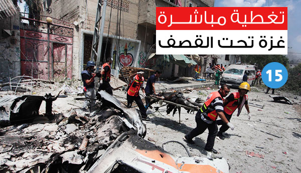 يواصل جيش الاحتلال الإسرائيلي لليوم الـ15 على التوالي عدوانه واسع النطاق على قطاع غزة ما أدى لاستشهاد 561 مواطنًا بينهم 120 طفلا، 42 امرأة و26 من المسنين. وأسفر عدوان الاحتلال عن إصابة ما يزيد عن و3300 مواطنا منهم 904 أطفال و533 من السيدات و25 من المسنين. وارتكب 32 مجزرة بحق عائلات استشهد ثلاثة وأفراد أكثر منها. وبدأ الاحتلال عملية برية محدودة مساء الخميس الماضي قال إنها تستهدف الأنفاق المنتشرة على الشريط الحدودي شرق القطاع، وشن بالتزامن مع هذا الاعلان قصفا عنيفا من البر والجو والبحر طال كل شيء. وتستهدف طائرات الاحتلال بشكل مكثف وعلى مدار الساعة منازل سكنية وأراض زراعية ملاصقة لمنازل المواطنين، وفيما يلي تطورات الأحداث لحظة بلحظة: [color=red]12:00[/color] مراسلنا: استشهاد محمود سليمان أبو صبحة وإصابة 5 آخرين باستهداف منزلهم في عبسان شرق خانيونس جنوب القطاع [color=red]11:55[/color] مراسلنا: إصابات باستهداف منزل لعائلة أبو صبحة في عبسان شرق خانيونس جنوب قطاع غزة [color=red]11:52[/color] مراسلنا: قصف مكثف من الزوارق الحربية على سواحل السودانية شمال غرب قطاع غزة [color=red]11:50[/color] مراسلنا: 20 إصابة غالبيتهم أطفال جراء قصف منزل لعائلة أبو استيتة في الشاطئ غرب مدينة غزة [color=red]11:40[/color] مراسلنا: طائرة بدون طيار تقصف منزلًا لعائلة عفانة قرب شارع السكة بتل الزعتر شمال القطاع [color=red]11:30[/color] مراسلنا: إصابات بقصف قرب مؤسسة المسحال بمخيم الشاطئ غرب مدينة غزة [color=red]11:15[/color] مراسلنا: استهداف منزل لعائلة كباجة بحي الشيخ رضوان غرب مدينة غزة [color=red]11:05[/color] الطائرات الحربية تدمر منزلًا لأحد المواطنين قرب موقع الشهيد عبد العزيز الرنتيسي في منطقة التوام [color=red]11:00[/color] مراسلنا: إصابة خطيرة بقصف قرب مسجد علي بالزيتون جنوب شرق مدينة غزة [color=red]10:50[/color] مراسلنا: شهيدان وصلا مستشفى الشفاء جراء القصف على حي الشجاعية شرق مدينة غزة [color=red]10:30[/color] مراسلنا: طائرات حربية تقصف أراض زراعية بمحررات خانيوس جنوب القطاع [color=red]10:05[/color] تدمير منزل لعائلة خضر في شارع غزة القديم ببلدة جباليا شمال قطاع غزة [color=red]10:00[/color] استشهاد الشاب محمد سعيد عبد الغفور (22 عامًا) بقصف بالقرارة شرق خانيونس جنوب القطاع [color=red]9:50[/color] مراسلنا: استشهاد الشاب جهاد محمود المغربي (22 عامًا) متأثرًا بجراحه في قصف منزل ظهر اليوم ببني سهيلا شرق خانيونس جنوب قطاع غزة [color=red]9:25[/color] الصحة: استشهاد المواطن جهاد محمود المغربي (22 عامًا) متأثرًا بجراحه بمحافظة خانيونس جنوب القطاع [color=red]9:11[/color] طائرات الاحتلال تدمر منزلًا لعائلة أبو طير بعبسان شرق خانيونس جنوب القطاع [color=red]9:10[/color] مراسلنا: شهيد بقصف دراجة نارية في القرارة شرق خانيونس [color=red]9:07[/color] 10 جرحى وصلوا إلى مستشفى ناصر الطبي وعدد آخر للمستشفى الأوروبي والجزائري جراء قصف مدفعي شرق خانيونس [color=red]9:05[/color] استشهاد المواطن محمد اشتيوي قبل قليل متأثرا بجراح أصيب بها في قصف إسرائيلي عصر اليوم [color=red]9:00[/color] مراسلنا: قصف على منزل لعائلة مهنا وسط مدينة غزة [color=red]8:30[/color] مراسلنا: ارتفاع عدد الشهداء في قصف عمارة السلام السكنية الملاصقة لبرج الإسراء وسط غزة إلى 12 شهيدًا وأكثر من 45 إصابة [color=red]8:15[/color] طائرات حربية تدمر منزلًا لعائلة دحلان قرب دوار المزنر شمال غرب مدينة غزة [color=red]8:10[/color] مراسلنا: عدد من الإصابات الحرجة بقصف دبابات الاحتلال لمنطقة الزنة والقرارة شرق خانيونس جنوب القطاع [color=red]8:05[/color] الصحة: شهيدان وعدد من الاصابات بقصف قرب مسجد الشمعة وسط مدينة غزة [color=red]7:50[/color] مراسلنا: 5 جرحى بقصف من طائرة بدون طيار لمسجد عباد الرحمن في بني سهيلا شرق خانيونس [color=red]7:48 [/color]مراسلنا: إصابة عضو اللجنة المركزية للجبهة الديمقراطية زكريا أبو دقة بقصف إسرائيلي على عبسان شرق خانيونس [color=red]7:45 [/color] مراسلنا: إصابات بقصف استهدف ديوان عائلة أبو حليب بالقرارة شرق خانيونس [color=red]7:35[/color] مراسلنا: ارتقاء 5 شهداء وإصابة 6 آخرين بقصف منزل لعائلة بريعم بدير البلح وسط قطاع غزة