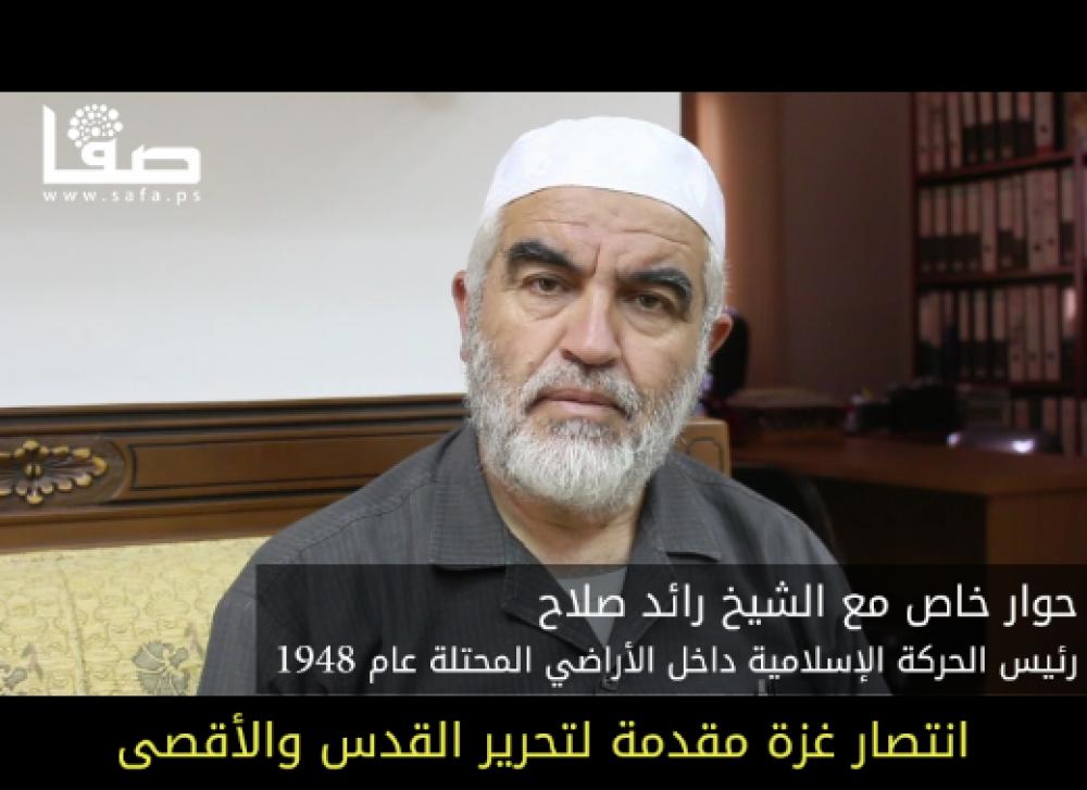 اعتبر الشيخ رائد صلاح رئيس الحركة الإسلامية داخل الأراضي المحتلة عام 1948 مساء الخميس أن انتصار غزة على جيش الاحتلال الإسرائيلي في عدوانه المتواصل يمثل مقدمة لتحرير القدس والمسجد الأقصى وقيام الدولة الفلسطينية. وقال الشيخ صلاح في تصريحات خاصة لوكالة "صفا" إن غزة تقاوم الاحتلال الإرهابي الإجرامي وهي تؤكد اليوم أن من قال إن جيش الاحتلال لا يقهر قد كذب فهي تنتصر على هذا الجيش الذي يملك أعتى عتاد عسكري. وأضاف أن "الاحتلال على باطل وغزة على حق ولذلك حق غزة ينتصر على باطل الاحتلال". وأكد الشيخ صلاح تصعيد لجنة المتابعة العربية في الداخل الفلسطيني المحتل، سلسلة نشاطاتها لنصرة غزة من خلال اعتصامات وتظاهرات مكثفة تؤكد على تأييد قطاع غزة. وذكر أن هذه النشاطات شملت إعلان إضراب عام في الداخل الفلسطيني المحتل وإطلاق حملة إغاثة شاملة مستمرة لسكان غزة. وأشار إلى أن نشاطات الداخل المحتل لنصرة غزة قوبلت بحرب إسرائيلية وفرض صدامات مسلحة ضدها واعتقال مئات من سكان الداخل المحتل وتهديد حياة الكثيرين من قيادات الداخل المحتل. لكن الشيخ صلاح أكد أن الداخل الفلسطيني المحتل وقواه السياسية ستبقي في نشاط متواصل ومكثف لنصرة غزة حتى تنتصر على الاحتلال وتقهر جيشه. وتواصل قوات الاحتلال الإسرائيلي عدوانها على قطاع غزة لليوم الثامن عشر، ما أدى لاستشهاد نحو 800 مواطن وجرح أكثر من 5 آلاف، وأغلب هؤلاء الضحايا من الأطفال والنساء والمسنين.