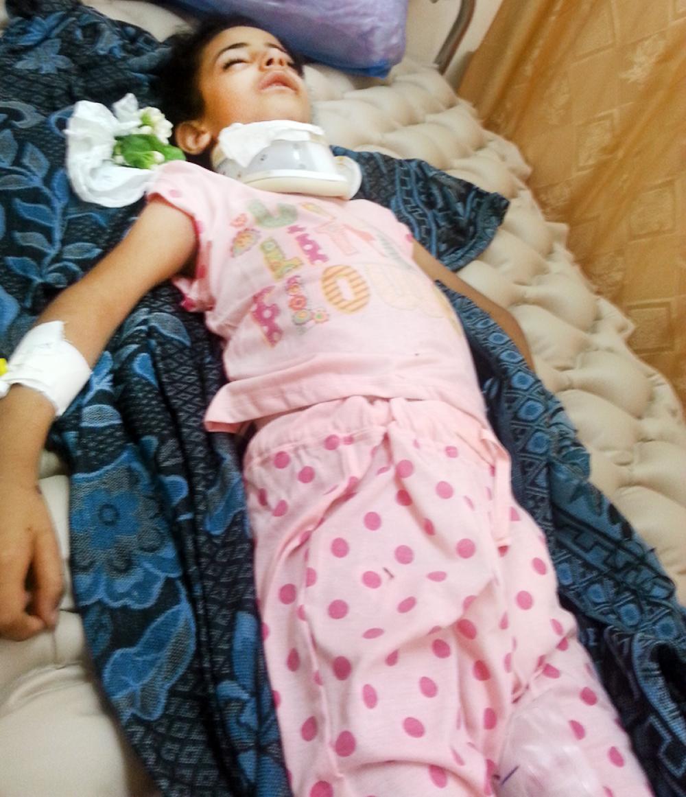 لم تكن تعلم الطفلة مها الشيخ خليل (7 أعوام) في يوم ما أنها ستفقد قدرتها على الحركة والمشي بشكل كامل إثر إصابتها بكسور في رقبتها، بعدما انهالت شظايا القذائف الإسرائيلية بلا هوادة على منزل عائلتها في حي الشجاعية شرق غزة. وحولت شظايا الاحتلال أحلام الطفلة البريئة إلى كابوس مزعج لازال يلاحقها في منامها، وهي تستذكر ما حل بعائلتها من فاجعة أفقدتها ثمانية من أفرادها من بينهم والدتها وشقيقتيها. وأصيبت مها التي ترقد على أحد الأسرة في مجمع الشفاء الطبي بغزة، بشظايا في رقبتها، أدت إلى حدوث كسر في الفقرة السادسة، مما تسبب لها بشلل رباعي أفقدها الحركة. وارتكبت مدفعية الاحتلال في العشرين من يوليو الجاري أبشع مجزرة في حي الشجاعية، ما أدى لاستشهاد ما يزيد عن 80 مواطنًا، وإصابة أكثر من 200 آخرين بجراح مختلفة، ودمار هائل بالمنازل. [title]تفاصيل الفاجعة[/title] أوقات مرعبة ومريرة عاشتها عائلة الشيخ خليل في ذلك اليوم، وهي تشاهد بأم أعينها حمم القذائف تنهمر على المنزل، ولا تستطيع فعل أي شيء لمن أصيب من أفراد العائلة التي بقيت دمائهم تنزف لساعات، دون استجابة لإغاثتهم. والحزن يبدو على وجهها، تتحدث عمتها "إم إبراهيم" (47عامًا) عن تفاصيل الفاجعة، قائلة "بعد صلاة فجر الأحد الماضي بدأت القذائف تنهال على منازل المواطنين بالمنطقة بصورة مكثفة، فحاول حينها شقيقي وبقية أفراد العائلة الذين تواجدوا داخل المنزل الهرب من شدة القذائف، والاحتماء في بيت الدرج، إلا أنها باغتتهم بشكل مباشر". [img=072014/re_1406387620.jpg]..[/img] وتضيف "القذائف كانت تنزل في كل مكان وتخترق جدران المنازل المحيطة بمنزل عائلتي، ولا تفرق بين أحد، فلم يعد هناك مكانًا آمنًا حتى بيت الدرج الذي كان شقيقي وبقية العائلة يعتقدون أنه آمن". ولم تتوقف القذائف بالانهمار على منزل عائلة الشيخ خليل المكون من أربع طوابق، وبقية المنازل المحيطة بالمنطقة، حتى أصيب جميع من تواجد في المنزل بجروح مختلفة. وحاول حامد والد مها قطع مسافة 300 متر لإنقاذ من تركوا ينزفون بدمائهم، إلا أن شدة القصف في المنطقة، وعدم سماح الاحتلال لسيارات الإسعاف بالدخول إليها، حال دون إسعافهم، ما أدى لاستشهاد ثمانية منهم بعد عدة ساعات. وفقدت مها والدتها (كانت حامل)، والتي كانت تحاول احتضانها وأشقائها، خوفًا عليهم من شظايا القذائف التي لا ترحم صغيرًا ولا كبيرًا، كما فقدت شقيقتيها هبة (13عامًا) وسامية (3أعوام)، وكذلك عمها وزوجته وعمتها وزوجة جدها. وكان والد مها (40عامًا) أُصيب في رجليه بشظايا، وشقيقها الوحيد زياد (12عامًا) أُصيب في رجلة اليمنى ورأسه، وعمتهما أصيبت في جبينها، وجدها في رجله، ولكنها كلها إصابات طفيفة. وأصيب شقيقتها فاطمة بعدة شظايا في منطقة الوجه والفك، ما أدى إلى فقدانها النطق، وهي الآن ترقد في إحدى مشافي جمهورية مصر العربية لتلقي العلاج، فيما تبقى للطفلة مها والدها وثلاثة من أشقاء هم سارة وزينب وزياد. "ما ذنب هؤلاء كي تقتلهم إسرائيل، هم مدنيون كانوا يقطنون المنزل بأمان، لا يحملون سلاحًا ولا أي شيء، حتى يتم استهدافهم ؟!، هنا تساءلت عمة مها، ولسان حالها يقول "حسبي الله ونعم الوكيل، ربنا ينتقم من اليهود ونشوف فيهم يوم أسود". ولم تقتصر بشاعة الاحتلال على عائلة الشيخ خليل، بل طال القصف المدفعي عائلات كثر في حي الشجاعية الذي تحولت منازله لدمار هائل، وكأن زلزالًا كبيرًا ضرب تلك المنطقة المكتظة بالسكان. [title]جروح لا تندمل[/title] وبألم شديد تصف عمة مها حالتها بأنها صعبة للغاية، قائلة "إنها تعيش حالة نفسية وصحية خطيرة، فهي بالكاد تستطيع التحدث معنا، في حين لا تزال آثار الصدمة تخيم عليها". ورغم آلامها وجروحها التي لا تندمل بعد، إلا أنها لا تستطع نسيان مشاهد تلك الليلة المروعة التي حلت بعائلتها، ولا تكاد تفارق مخيلتها، فكثيرًا ما تستذكرها وتروي تفاصيلها، لتبقى شاهدة على مدى إجرام الاحتلال ولا تستطيع عمتها التحدث أمام مها عن تفاصيل المأساة التي حلت بعائلتها، خوفًا على نفسيتها، فتقول "نحاول ب