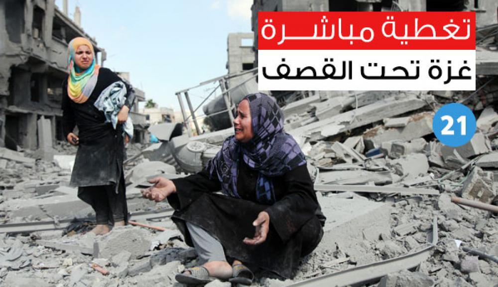 يواصل الاحتلال الإسرائيلي لليوم الـ21 عدوانه واسع النطاق على قطاع غزة ما أدى لاستشهاد 1031 مواطنا، منهم 208 طفلًا و82 سيدة و40 مسنا، فيما جرح ما يزيد عن 6000 منهم 1561 طفلا و1012سيدة و203 مسنين. وتشن طائرات الاحتلال مئات الغارات الجوية المكثفة على كافة مناطق القطاع، مترافقًا مع قصف مدفعي مكثف. وفيما يلي تطورات الأحداث لحظة بلحظة: [color=red]01:10[/color] التعرف على جثمان الشهيد حسين حسن أبو النجا (65 عامًا) الذي استشهد عصر اليوم بقصف على خانيونس جنوب القطاع [color=red]11:40 [/color]مراسلنا: مدفعية الاحتلال تطلق عدة قذائف على أبراج الشيخ زايد شمال القطاع [color=red]10:50[/color] مراسلنا: قصف مدفعي متقطع على منطقة الزنة شرق عبسان بخانيونس [color=red]08:10[/color] مراسلنا: استشهاد الشاب محمد صيام من رفح متأثرًا بجراح أصيب بها قبل أيام [color=red]07:10[/color] قصف مدفعي شرق البريج واستهداف أرض زراعية في المغازي وسط القطاع [color=red]07:00[/color] ارتفاع عدد شهداء استهداف بني سهيلا شرق خانيونس إلى شهيدين بعد ارتقاء أحمد أبو سعدة. [color=red]06:40[/color] استشهاد المواطن عصام ابراهيم ابو شاب 42 عام و هو موظف في بلدية بني سهيلا في استهداف شرق خان يونس [color=red]06:00[/color] طائرات الاحتلال تستهدف أرضًا لعائلة حلس قرب سوق فراس وسط مدينة غزة [color=red]12:29[/color] سقوط قذائف مدفعية على برج 7 و8 في ابراج الندى واندلاع حريق في المكان [color=red]12:25[/color] القدرة: استشهاد المواطنة جليلة فرج عياد واصابات نجلها بجراح حرجة جدا جراء استهداف منزلهم شرق غزة [color=red]12:26[/color] 3 إصابات بسقوط قذيفة مدفعية قرب مسجد الخلفاء بمخيم جباليا شمال القطاع [color=red]12:09[/color] استهداف مقر الخدمات الطبية والعسكرية بأنصار [color=red]13:58[/color] استهداف مزارع دواجن بقيزان النجار بخانيونس [color=red]13:58[/color] قصف منزل أبوشرار بحي التفاح [color=red]13:53[/color] قصف يدمر منزل أبو المجد أبو شرار بقصف مسجد بحي التفاح [color=red]13:51 [/color]استهداف لمنزل بحي التفاح شرق غزة [color=red]13:46[/color] قصف مكثف خلف أبراج الكرامة ومنطقة السودانية قرب مسجد الخالدي [color=red]13:43[/color] سقوط 4 صواريخ من قذائف الاحتلال على منزل لعائلة الحرتاني بجباليا البلد [color=red]13:42[/color] قصف مدفعي قرب سوق السيارات بالزيتون وبمحيط مشفى الوفاء ومنطقة الشعف وجبل الريس [color=red]13:39[/color] قذائف دخانية على مدينة الشيخ زايد شمال القطاع [color=red]13:39[/color] قصف نادي خدمات نصيرات [color=red]13:27[/color] مراسلنا: قصف عنيف على منازل في عزبة دردونة شرق جباليا ولا إصابات [color=red]13:19[/color] استهداف لأرض زراعية صغيرة قرب منزل زياد الظاظا [color=red]13:14[/color] استهداف قرب مسجد حسن البنا بحي الزيتون شرق غزة 13:15 استهداف لمنزل لعائلة الداية بحي الدرج شرق غزة [color=red]12:57 [/color]مراسلنا: 3 شهداء وعدة اصابات باستهداف منزل لعائلة مرتجى بالشجاعية بينهم يوسف عبد شحادة المصري 24 عام [color=red]12:50[/color] إصابة في قصف مدفعي في جباليا البلد [color=red]12:50[/color] قصف مقر مرئية الأقصى الأرضية وسط مدينة غزة [color=red]12:43[/color] القدرة: حصيلة الاستهدافات الاخيرة على قطاع بلغت 8 شهداء و نحو 30 جريحا [color=red]12:06[/color] الاحتلال يستهدف منزل يعود لعائلة الدجني بمنطقة الشاطئ غرب غزة [color=red]11:59[/color] شهيدين باستهداف دراجتين ناريتين بين عبسان والزنة شرق خان يونس هما خالد عبد الستار سهمود (24 عامًا) وعصام عبد الكريم أبو سعادة (40 عامًا) [color=red]11:52[/color] استهداف طاقم دفاع مدني دخل لإخلاء جرحى بمنطقة الزنة وفقدان الاتصال معه [color=red]11:42[/color] اصابات باستهداف عمارة لعائلة الصالحي بالنصيرات [color=red]11:11[/color] التعرف على شهداء المحافظة الوسطى وهم ابراهيم خليل الديراوي 27 عام وعلاء ناهض مطر 24 عام [color=red]10:52 [/color]وصول الشهيد المواطن حازم فايز ابو شمالة 33 عام و اصابة 3 اخرين بجراح مختلفة [color=red]10:47[/color] 4شهداء و10 إصابات بقصف مدفعي عنيف شرق خانيونس وبالمنطقة الوسطى [color=red]10:45[/color] استشهاد 2 من المواطنين شرق المنطقة الوسطى و لازالا مجهولي الهوية [color=red]10:42 [/color]شهيد ثانٍ و10 إصابات حرجة بقصف مدفعي استهدف منازل لآل قديح بعبسان [color=red]10:36[/color] شهيد 