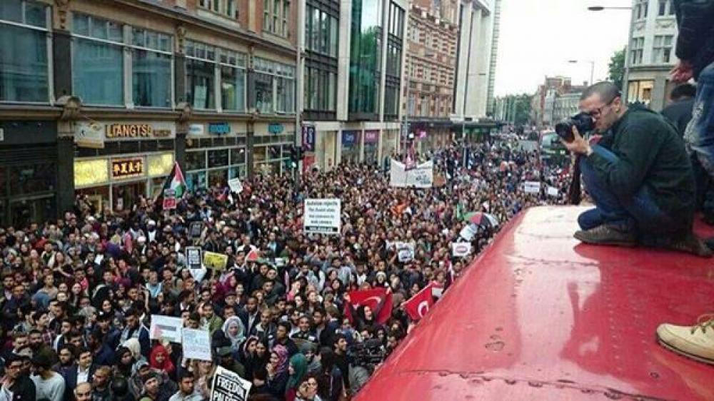 خرج ما يزيد عن 45 ألف متظاهر أمس السبت في مسيرة تاريخية في العاصمة البريطانية لندن ضد العدوان وجرائم الحرب الإسرائيلية على قطاع غزة. وأعلن فادي أبو سيدو خلال المسيرة عن إطلاق أعمال 'الحملة الدولية لإدراج مجموعات المستوطنين الإسرائيليين على قائمة المنظمات الإرهابية' في وسائل الإعلام البريطانية'. وأكد المتحدث باسم الحملة أبو سيدو، 'أن الحملة تجهز حاليا للاجتماع بالنواب البريطانيين وصانعي السياسة في لقاء خاص في البرلمان البريطاني لمناقشة دمج الحملة كجزء من السياسة العملية للأحزاب البريطانية وكمشروع قرار في مجلس العموم البريطاني'. وستستمر الحملة في جذب التأييد الشعبي بما يساعد على تحقيق أهدافها.بجسب أبو سيدو.