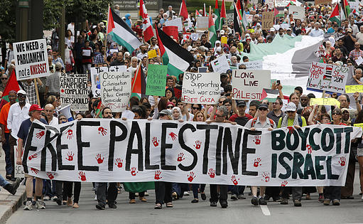 تظاهر نحو 17 ألف شخص في شيكاغو الأمريكية تضامنًا مع قطاع غزة، وللمطالبة بوقف العدوان الإسرائيلي المتواصل على القطاع. وتعتبر هذه التظاهرة الأكبر تاريخيًا في الولايات المتحدة دعمًا لفلسطين، فيما شهدت خمس مدن أخرى هي سان فرانسسيكو، وديربون، وممفيس، وسياتل، وريتشموند تظاهرات كبرى نصرة لفلسطين وغزة، وللمطالبة بوقف العدوان والمجازر بحق الشعب الفلسطيني. وأعلن التحالف من أجل العدالة في فلسطين على لسان القيادي رفيق جابر الشعيبي تواصل التظاهرات للمطالبة بوقف العدوان الإسرائيلي، والاستجابة للشروط الفلسطينية كافة، بما فيها رفع الحصار عن غزة، وإقامة مطار وميناء بحري يتيح حرية الحركة والتجارة للفلسطينيين وإطلاق سراح الأسرى، إلى جانب الشروط الأخرى. واعتبر الشعيبي أن التظاهرات تهدف إلى وقف العدوان، والتأكيد على مسؤولية "إسرائيل" والولايات المتحدة كداعم رئيس للجرائم التي ترتكبها "إسرائيل" بحق الأطفال والمدنيين الفلسطينيين. من جانبه، اعتبر القيادي في التحالف غسان بركات أن المنحة المالية الأميركية العسكرية لـ"إسرائيل"، وقدرها نحو ربع مليار دولار ستضاعف من الاحتجاجات والتظاهرات في الشوارع. بدوره، أكد رئيس مركز شيكاغو الإسلامي غسان بلوط استمرارية التظاهرات وتكثيفها، معلنًا عن تنظيم فعاليات مناهضة للعدوان، وأنه جار العمل على تفعيل قدرات الجالية والمتضامنين. فيما أعلن الناشط السياسي الفلسطيني منسق تحالف حملة مقاطعة "إسرائيل" في الولايات المتحدة سنان شقديح أن التحالف دعا أبناء الجالية وأنصار فلسطين للتظاهر يوم العيد وعقب الصلاة أمام القنصليات الإسرائيلية لمواجهة تظاهرات داعمة لـ"إسرائيل" سينفذها أنصار اللوبي المؤيد لجرائم "إسرائيل" "الأيباك". وكانت منظمة "قف معنا" الصهيونية وهي من تحالف "الأيباك" دعت لتظاهرات متزامنة دعما لـ"إسرائيل" يوم الاثنين القادم مستغلة انشغال أبناء الجالية بعيد الفطر. فيما دعت أحد قادة التحالف من أجل العدالة في فلسطين أحلام جبارة أبناء الجالية لمواجهة المظاهرة الصهيونية بمظاهرة فلسطينية حتى لو اضطر أبناء الجالية لقضاء العيد أمام القنصليات الإسرائيلية .