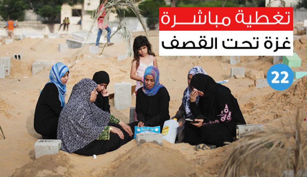 يواصل الاحتلال الإسرائيلي لليوم الـ22 عدوانه واسع النطاق على قطاع غزة ما أدى لاستشهاد 1085 مواطنًا، منهم 251 طفلًا و94 سيدة و50 مسنا، فيما جرح ما يزيد عن 6470 منهم 1561 طفلا و1012سيدة و203 مسنين. وتشن طائرات الاحتلال مئات الغارات الجوية المكثفة على كافة مناطق القطاع، مترافقًا مع قصف مدفعي مك ثف. وفيما يلي تطورات الأحداث لحظة بلحظة: [color=red]01:20[/color] قصف منزل لعائلة غدارة في حي الشيخ رضوان شمال مدينة غزة [color=red]01:15[/color] الصحة: انتشال شهيدة طفلة باستهداف منزل عائلة الفار بالوسطى [color=red]01:10[/color] الاحتلال يلقي قنابل غاز في محيط مسجد الفاروق بحي الزيتون، وقنابل إضاءة في مناطق متفرقة من مدينة غزة [color=red]01:00[/color] أكثر من 35 إصابة معظمهم من النساء والأطفال جراء القصف المدفعي على مخيم البريج وسط قطاع غزة [color=red]00:50[/color] الصحة: ارتفاع عدد شهداء قصف منزل لعائلة أبو زيد برفح إلى 8 شهداء بينهم طفل [color=red]00:35[/color] شهود: استهداف منزل لعائلة الغرابلي جنوب حي الزيتون جنوب شرق مدينة غزة [color=red]00:25[/color] شهود: 3 شهداء وإصابات بقصف منزل لعائلة أبو زيد بحي الجنينة بمدينة رفح جنوب قطاع غزة [color=red]00:20[/color] أنباء عن إصابات بسقوط عدد من قذائف المدفعية في عزبة دردونة شرق جباليا شمال قطاع غزة [color=red]00:10[/color] قذائف من البوارج الحربية الإسرائيلية تسقط على ميناء غزة وفي أراض زراعية على ساحل المدينة [color=red]00:00[/color] تدمير منزل لعائلة رشيد في محيط مسجد مصعب بن عمير بتل الهوى جنوب غرب مدينة غزة [color=red]23:50[/color] طائرات بدون طيار تستهدف منزلًا لعائلة صيام بالفالوجا شمال القطاع [color=red]23:40[/color] شهيد بقصف إسرائيلي على مخيم النصيرات وسط قطاع غزة هو عبد الصمد رمضان (18 عامًا) [color=red]23:35[/color] الصحة: استشهاد فايزة أحمد النادي (59 عامًا) وعلى حسن الهواري (31 عامًا) متأثرين بجراحهما اللذين أصيبا فيها بوقت سابق [color=red]23:30 [/color]طائرات بدون طيار تستهدف منزلًا لعائلة صيام بالفالوجا شمال القطاع [color=red]23:25[/color] استشهاد 3 مواطنين بينهم اثنين من المسنين بقصف طائرات الاحتلال منزلين لعائلتي إسماعيل وبدوي بمخيم المغازي وسط قطاع غزة [color=red]23:15[/color] طائرات الاحتلال تقصف منزلًا لعائلة مشعل بدير البلح، ومنزلًا لعائلة القرعان في الزوايدة وسط قطاع غزة [color=red]23:10[/color] شهيد بقصف إسرائيلي على مخيم النصيرات وسط قطاع غزة وهو عبد الصمد رمضان (18 عامًا) [color=red]23:05[/color] الصحة: استشهاد 5 مواطنين جدد ونحو 20 جريحا في استهداف بالقرب من الجامعة الاسلامية بخان يونس [color=red]23:00[/color] 3 إصابات بقصف أرض زراعية قرب شارع الجلاء وسط مدينة غزة [color=red]22:40[/color] مراسلنا: الزوارق الحربية تقصف ساحل خانيونس جنوب قطاع غزة [color=red]22:30[/color] ارتفاع عدد شهداء استهدافات خانيونس إلى 5 شهداء بعد استشهاد ناجي احمد الرقب (19 عامًا)، ورامي خالد الرقب (35 عامًا) [color=red]22:20[/color] شهيد و25 جريحًا معظمهم أطفال ونساء باستهداف منزل بالنصيرات وسط قطاع غزة [color=red]22:00[/color] مراسلنا: إصابة بقصف مدفعي إسرائيلي على دوار الحلبي في بلدة جباليا شمل قطاع غزة [color=red]21:40[/color] القدرة: 3 شهداء ونحو 20 جريحًا باستهدافات إسرائيلية شرق خانيونس جنوب قطاع غزة [color=red]21:25[/color] 5 إصابات بقصف مدفعي شمال مخيم النصيرات وسط قطاع غزة [color=red]21:15[/color] مراسلنا: الزوارق تقصف ساحل النصيرات والمدفعي يقصف أبراج الزهراء [color=red]21:10[/color] قصف مدفعي مكثف على شرق حي الزيتون جنوب شرق مدينة غزة [color=red]21:00[/color] الصحة: 18 إصابة بجراح مختلفة بعدة استهدافات بالمنطقة الوسطى والشمال وغزة [color=red]20:55[/color] قصف منزل في أرض المفتي بمخيم النصيرات وسط قطاع غزة [color=red]20:50[/color] مراسلنا: 5 شهداء وأكثر من 50 إصابة بقصف مدفعي عنيف على جباليا شمال قطاع غزة [color=red]20:35[/color] مراسلنا: أكثر من 13 إصابة من النساء والأطفال في القصف المدفعي بشارع الجرن ومسعود بجباليا [color=red]20:30[/color] 5 إصابات بقصف منزل لعائلة الكباريتي بحي الدرج وسط مدينة غزة [color=red]20:25[/color] قصف منزل لعائلة الكباريتي بحي الدرج وسط مدينة غزة [color=red]20:20[/color] الصحة: استشه