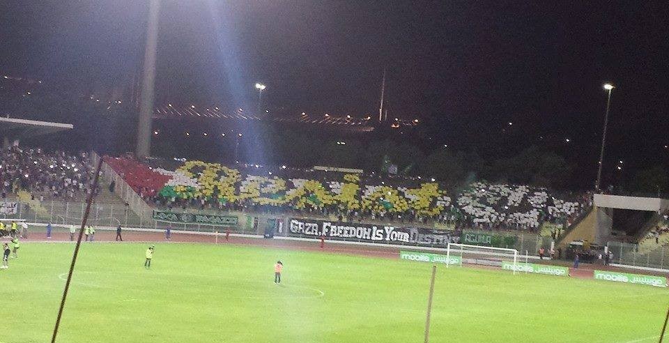 رسمت جماهير نادي شباب قسنطينة الجزائري خلال المواجهة الاستعراضية التي لعبها فريقهم ضد نظيره سيلتا فيجو الإسباني لوحة فنية رائعة في المدرجات مكتوب عليها بالإنجليزية "الصمود يا غزة". ولم تجد جماهير "السنافر" سوى هذه الصورة أو ما يسمى بـ "تيفو" لكي يتضامنوا مع أهالي قطاع غزة الذين يتعرضون لحرب متواصلة منذ 22 يوماً من طرف الجيش الإسرائيلي ويقصفون بصواريخهم كل يوم. وتدل الصورة على أن القضية الفلسطينية تخص الجزائريين، وباقية في قلوبهم وقلوب المسلمين والعرب كافة. وتفوق شباب قسنطينة بهدف دون رد وقعه بولمدايس بواسطة ركلة جزاء بملعب الشهيد حملاوي الذي عرف حضوراً جماهيرياً غفيراً من جانب مشجعي شباب قسنطينة.