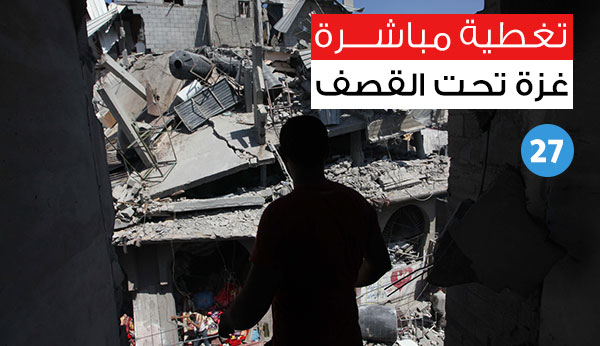 واصل الاحتلال الإسرائيلي لليوم الـ27 عدوانه واسع النطاق على قطاع غزة بما يشمل غارات من الطيران الحربي وقصف مدفعي وأخر من الزوارق البحرية بشكل مكثف إلى جانب توغل بري على أطرافه. ووفق وزارة الصحة في غزة أدى عدوان الاحتلال حتى الآن إلى استشهاد 1712 منهم (398 طفلا و 207 سيدة و 74 مسنا)، و9080 جريحا منهم (2744 طفلا و 1750 سيدة و343 مسنا). وفيما يلي تطورات الأحداث لحظة بلحظة: [color=red]00:05[/color] مراسلنا: طائرات الاحتلال تقصف أراض زراعية شمال شرق رفح جنوب قطاع غزة [color=red]23:40[/color] إصابات باستهداف مجموعة من المواطنين قرب محطة خلة في جباليا النزلة شمال قطاع غزة [color=red]23:25[/color] طائرات الاحتلال تستهدف منزلا لعائلة الرضيع في بيت لاهيا شمال قطاع غزة [color=red]22:50[/color] استشهاد الشاب يحيى جمال شبات 29 عاما متأثرا بجراح أصيب بها حيث كان يعالج بمشفى الشفاء بغزة [color=red]20:20[/color] استشهاد سعيد جودة معروف وإصابة اثنين من عائلته بقصف طائرات الاحتلال منزله بجباليا شمال قطاع غزة [color=red]22:05[/color] مراسلنا: طائرات الاحتلال تستهدف أراض زراعية بحي السلام شرق رفح [color=red]22:00[/color] الصحة: 82 شهيدا اليوم ما يرفع حصيلة العدوان إلى 1682 [color=red]21:10[/color] 7 إصابات باستهداف منزل لعائلة العطار ببلدة العطاطرة غرب بيت لاهيا شمال قطاع غزة [color=red]20:55[/color] مراسلنا: طائرات الاحتلال تقصف منزلًا لعائلة أبو علوان غرب خانيونس جنوب قطاع غزة [color=red]20:40[/color] مراسلنا: طائرات الاحتلال تقصف أرضًا زراعية قرب سوق الأمل غرب خانيونس جنوب قطاع غزة [color=red]20:20[/color] مراسلنا: 4 شهداء بقصف سيارة بين عبسان وبني سهيلا شرق خانيونس جنوب قطاع غزة [color=red]20:10[/color] الصحة: وصول شهيدين للمستشفي الكويتي بمدينة رفح وهما محمد حسن قشطة، وأحمد اشتيوي قشطة [color=red]20:05[/color] تدمير منزل لعائلة أبو ناصر بمدينة الشيخ زايد شمال قطاع غزة [color=red]20:00[/color] تدمير منزل لعائلة الحولي في شارع النخل بدير البلح واستهداف منزل آخر لعائلة زمزم بمخيم المغازي وسط قطاع غزة [color=red]19:25[/color] طائرات الاحتلال تدمر منزلًا لعائلة العبادلة شرق القرارة شمال غرب خانيونس [color=red]19:15[/color] مراسلنا: 3 شهداء في استهداف مجموعة مواطنين مقابل مسجد هارون الرشيد بشارع جورج شرق رفح جنوب قطاع غزة [color=red]19:11[/color] طائرات الاحتلال تقصف موقع "قريش" وأراض زراعية جنوب غرب مدينة غزة [color=red]19:10[/color] مراسلنا: انتشال جثامين 3 شهداء بخزاعة شرق خانيونس إحداها متحللة لسيدة [color=red]19:00[/color] طائرات بدون طيار تقصف منزلًا لعائلة فياض بدير البلح وسط قطاع غزة [color=red]18:55[/color] استمرار القصف المدفعي على مناطق بشرق جباليا شمال قطاع غزة [color=red]18:45[/color] مراسلنا: ارتفاع عدد شهداء استهداف مجموعة مواطنين قرب مسجد أهل السنة شرق رفح إلى 5 شهداء [color=red]18:41[/color] مدفعية الاحتلال تستهدف منزلًا لعائلة عبد ربه شرق جباليا شمال قطاع غزة [color=red]18:40[/color] طائرات الاحتلال تدمر مقر نقابات العمال في رفح [color=red]18:10[/color] غارة على أرض الداعور شمال بلدة بيت لاهيا شمال قطاع غزة [color=red]18:05[/color] 4 شهداء وعدد من الجرحى باستهداف مجموعة مواطنين قرب مسجد أهل السنة شرق رفح [color=red]17:10[/color] مراسلنا: استشهاد 5 مواطنين بقصف عائلة البحابصة بحي السلام شرق رفح [color=red]16:30[/color] شهيد وعدد من الجرحى باستهداف تجمع مواطنين في القرارة بخان يونس [color=red]16:20[/color] طيران الاحتلال يقصف منزلا شمال رفح ويدمره كليا [color=red]16:08[/color] استهداف منزل لعائلة "السرسك" وسط رفح وأخر على الشريط الحدودي مع مصر [color=red]16:05[/color] الاوقاف: الاحتلال دمر 41 مسجدا تدميرا كليا و120 جزئيا في عدوانه المتواصل على قطاع غزة [color=red]16:00[/color] شهيد وعدد من الإصابات يقصف الاحتلال منزلا لعائلة "سليم" في القرارة بخان يونس [color=red]15:50[/color] مراسلنا: 4 اصابان بقصف طيران الاحتلال منزل يعود لعائلة "سلامة" في حي الأمل غرب خان يونس [color=red]15:30[/color] ثلاث إصابات في قصف الاحتلال منزل يعود لعائلة "أبو غليون" في حي الصبرة [color=red]15:07[/color] أربعة شهداء وعدد من الإصابات جراء قصف الاحتلال منزلاً لعائلة "ماضي" في مخيم