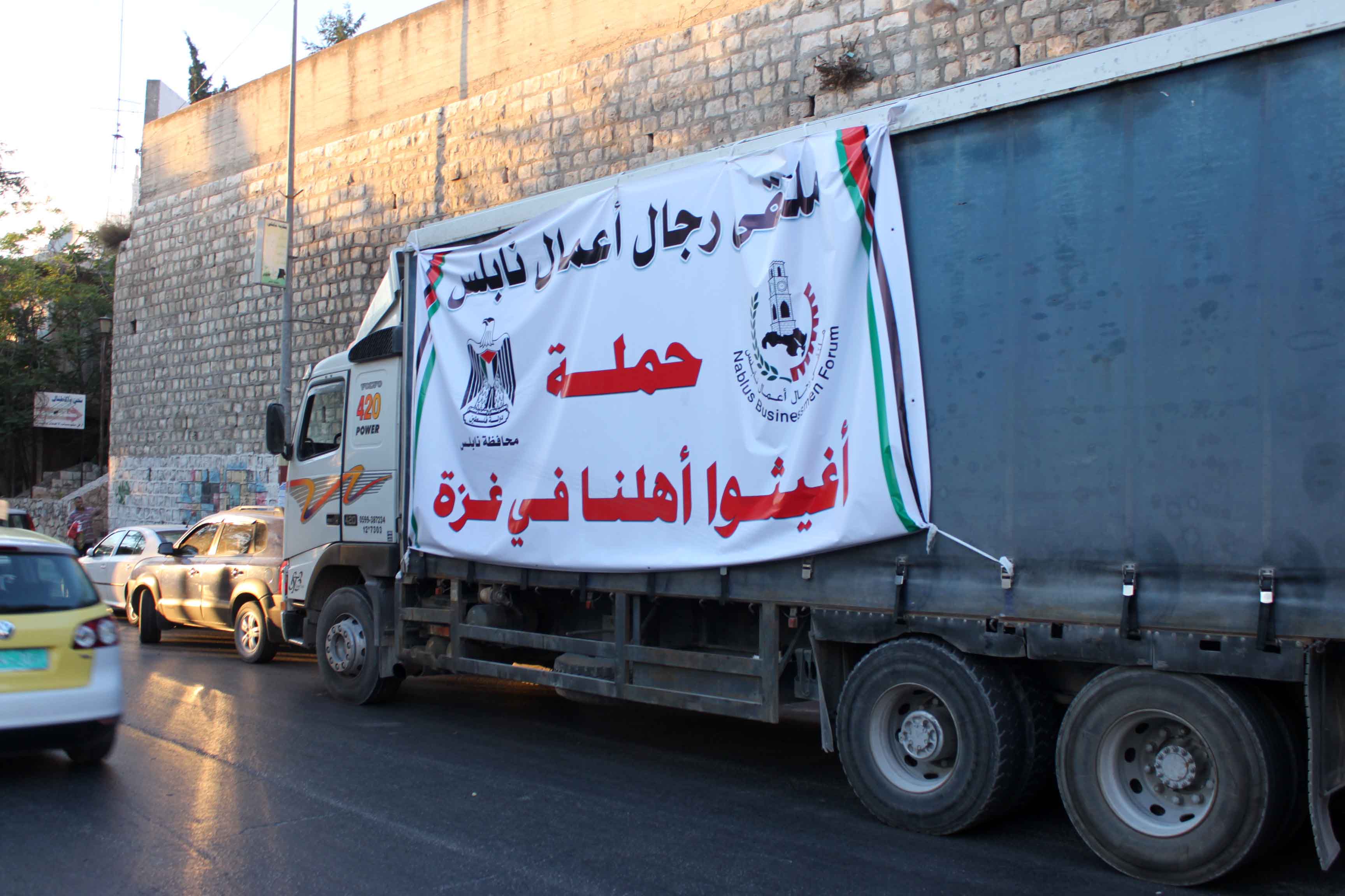 ارسل ملتقى رجل أعمال نابلس ضمن حملة أطلقت لجمع التبرعات لمساندة أهل غزة قافلة مساعدات تضم 8 شاحنات تحتوي على مساعدات عينية لإغاثة سكان القطاع المنكوب بفعل الحرب الاسرائيلية. وتحمل الشاحنات المرسلة والتي انطلقت مساء الاثنين من أمام المستشفى الوطني الحكومي في نابلس شحنات إغاثة تضم عبوات مياه معدنية للشرب، وأغطية وفرشات للنوم بالاضافة للعديد من المستلزمات والاحتياجات الضرورية. وقال رئيس ملتقى رجال أعمال نابلس نضال البزرة : "إنها ليست إغاثة بل هو استحقاق وطني وواجب أخلاقي وديني على الشعب الفلسطيني وعلى الأمة الإسلامية والعربية"، وأضاف :"إن غزة ستنتصر هذا العام كما انتصرت في عام 2008". واشار البزرة أن هذه القافلة هي الأولى وسيجري العمل على جمع التبرعات والمساعدات لارسال قوافل أخرى، لافتا إلى أن جميع المساعدات التي أرسلت في هذه القافلة قد تمت بتمويل ذاتي من الهيئة العامة لملتقى رجال أعمال نابلس وسيتم تسليمها لجمعية رجال أعمال غزة في القطاع الذين سيتولون بدورهم توزيع تلك المساعدات. وتأتي هذه المساعدات ضمن حملة أطلقت تحت عنوان "أغيثوا أهلنا في غزة" من قبل لجنة التكافل المجتمعي في نابلس والتي تضم مؤسسات المجتمع المدني والقطاع الخاص في المدينة. وتعد هذه الحملة إحدى أوجه التفاعل والتكافل الشعبي الفلسطيني في الضفة الغربية مع أشقائهم المنكوبين في قطاع غزة بفعل الحرب التي تستهدفهم منذ قرابة شهر.