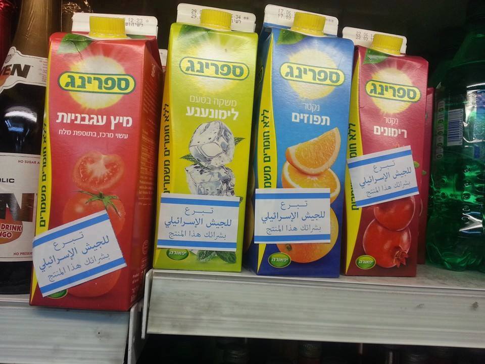 تنفذ مجموعات شبابية في جنين شمال الضفة الغربية حملات واسعة لدعم مقاطعة المنتجات الإسرائيلية في المجالات التجارية بالمحافظة، وسط تجاوب كبير من قبل التجار والمواطنين. وأشار منظمو الحملة في تصريح صحفي الثلاثاء إلى أن أنهم شرعوا منذ مطلع الأسبوع الجاري بحملة زيارات واسعة للتجار، وألصقوا بوسترات وملصقات دعائية خاصة بالحملة مع شرح لأصحاب المحلات حول أهمية مقاطعة بضائع ومنتجات الاحتلال، وتأثير مثل هذه الحملات على اقتصاد الاحتلال. ونوهوا إلى أن الحملة استهدفت التجار وأصحاب المحلات التجارية والمواطنين، الذين عبروا عن تقبلهم لفكرة الحملة وعلى لصق الملصقات والبوسترات، وسيتركز في محلاتهم على المنتجات الإسرائيلية. وتضمنت الحملة إلصاق شعار "تبرع للجيش الإسرائيلي بمجرد شرائك هذا المنتج" وسط تأكيدات التجار بأنهم لن يستوردوا بضائع إسرائيلية جديدة بعد نفاذ المخزون.