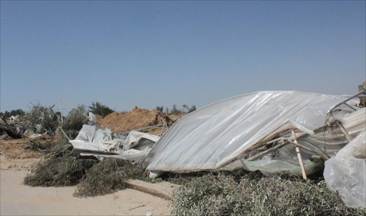 جانب من المساحات الزراعية التي دمرها القصف الإسرائيلي شرق رفح