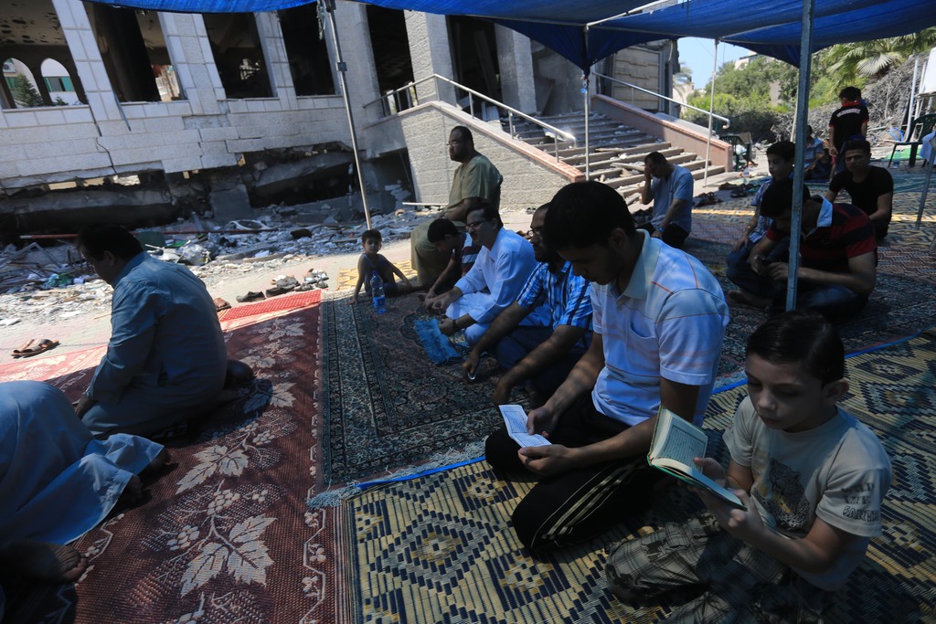 أدى المواطنون الذي دمرت مقاتلات الاحتلال الإسرائيلي مساجدهم خلال العدوان الإسرائيلي المتواصل على قطاع غزة صلاة الجمعة على أنقاض هذه المساجد وذلك تأكيدا على فشل مخطط الاحتلال. وقصفت مقاتلات الاحتلال الإسرائيلي خلال العدوان المستمر منذ 40 يوما عشرات المساجد ما أدى إلى تدمير أكثر من 60 منها بشكل كبير، إضافة إلى تضرر العشرات بشكل متفاوت. وتعمد الاحتلال الإسرائيلي استهداف المساجد خلال عدوانه هذا بقصفها بقنابل وصواريخ كبيرة جدا، وذلك على غرار الحرب على غزة نهاية 2008 بداية 2009 حيث دمر وقصف أكثر من 150 مسجدا بمختلف محافظات القطاع. ويزعم جيش الاحتلال أن هذه المساجد تستخدم في تخزين الأسلحة والصواريخ وهو الأمر لم يثبت مزاعمه هذه بأي دليل رغم وصول قواته البرية إلى مساجد دمرها إضافة إلى التحليق المكثف لطائراته المختلفة بسماء القطاع.