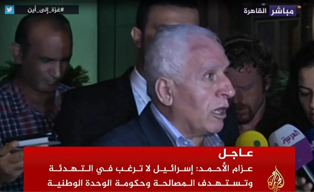 أعلن رئيس الوفد الفلسطيني المفاوض للتهدئة في القاهرة عزام الأحمد مغادرة الوفد فجر الأربعاء، العاصمة المصرية بعد إظهار الحكومة الإسرائيلية عدم جديتها ورغبتها بالتوصل لاتفاق دائم لوقف إطلاق النار في قطاع غزة. وقال الأحمد للصحفيين في القاهرة "إن الوفد الفلسطيني سيغادر القاهرة بعد ساعات لكننا لا نعتبر أننا انسحبنا، وعندما يرى الوسيط المصري أن الوقت والمناخ متوفر لاستئناف المفاوضات ويتلقي ردا على الورقة الفلسطينية فإن الوفد جاهز للعودة". واعتبر الأحمد أن "الوسيط المصري عليه مسئولية رسم مستقبل المفاوضات في المرحلة المقبلة ". وقال "رغم أن التهدئة انهارت قبل عدة ساعات (عصر الثلاثاء) فإنه سبق ذلك مغادرة الوفد الإسرائيلي مما يدل على أن هناك قرار مبيت من (رئيس وزراء الاحتلال بنيامين) نتنياهو بإفشال مفاوضات وانهيار التهدئة ". وأضاف "أي تهدئة بين متحاربين قد يحدث خلل ولكن لا يؤدي إلى انهيار شامل، والتصعيد العسكري الإسرائيلي يؤكد صحة الموقف الفلسطيني بأن (إسرائيل) غير جادة بالتوصل إلى اتفاق ". وذكر الأحمد أن الوفد الفلسطيني أظهر مرونة عالية جدا وتقدم بسلسلة اقتراحات أمس واليوم وسلم الوسيط المصري ورقة متكاملة تستجيب لكل متطلبات الوصول إلى اتفاق وتفاهمات تؤدي لوقف نزيف الدم والدمار وتفتح الطريق أمام مباحثات جدية ورفع الحصار "لكن نتنياهو لا يريد الاتفاق ". وأشار إلى أن "كل اقتراحات الوفد الإسرائيلي المفاوض يرفض فيها الربط بين الضفة الغربية وقطاع غزة بغرض تقسيم الوطن الفلسطيني الواحد، كما طرح قضايا أمنية متعددة أبرزها نزع السلاح وهو ما ترفضه القيادة الفلسطينية ". وبين أنه حتى هذه اللحظة لم يتسلم الوفد الفلسطيني ردا إسرائيليا على الورقة الفلسطينية التي قدمت منذ تسعة ساعات رغم أن جوهر بنودها تم نقاشه على مدار الأيام الأخيرة. واعتبر أن الاحتلال يريد فرض شروطه عبر التصعيد العسكري على الجانب الفلسطيني والوسيط المصري، وكنا نأمل أن يجيبوا على الورقة الفلسطينية مع إمكانية تمديد التهدئة لعدة ساعات إلا أن عجرفة "إسرائيل" تدل على عدم رغبتها بالاتفاق . وشدد الأحمد على أنه "لن يوضع حد لإراقة الدماء والدمار إلا بإنهاء الاحتلال الإسرائيلي، ونأمل من المجتمع الدولي وتحديد الولايات المتحدة تحمل المسئولية تجاه حل القضية الفلسطينية".