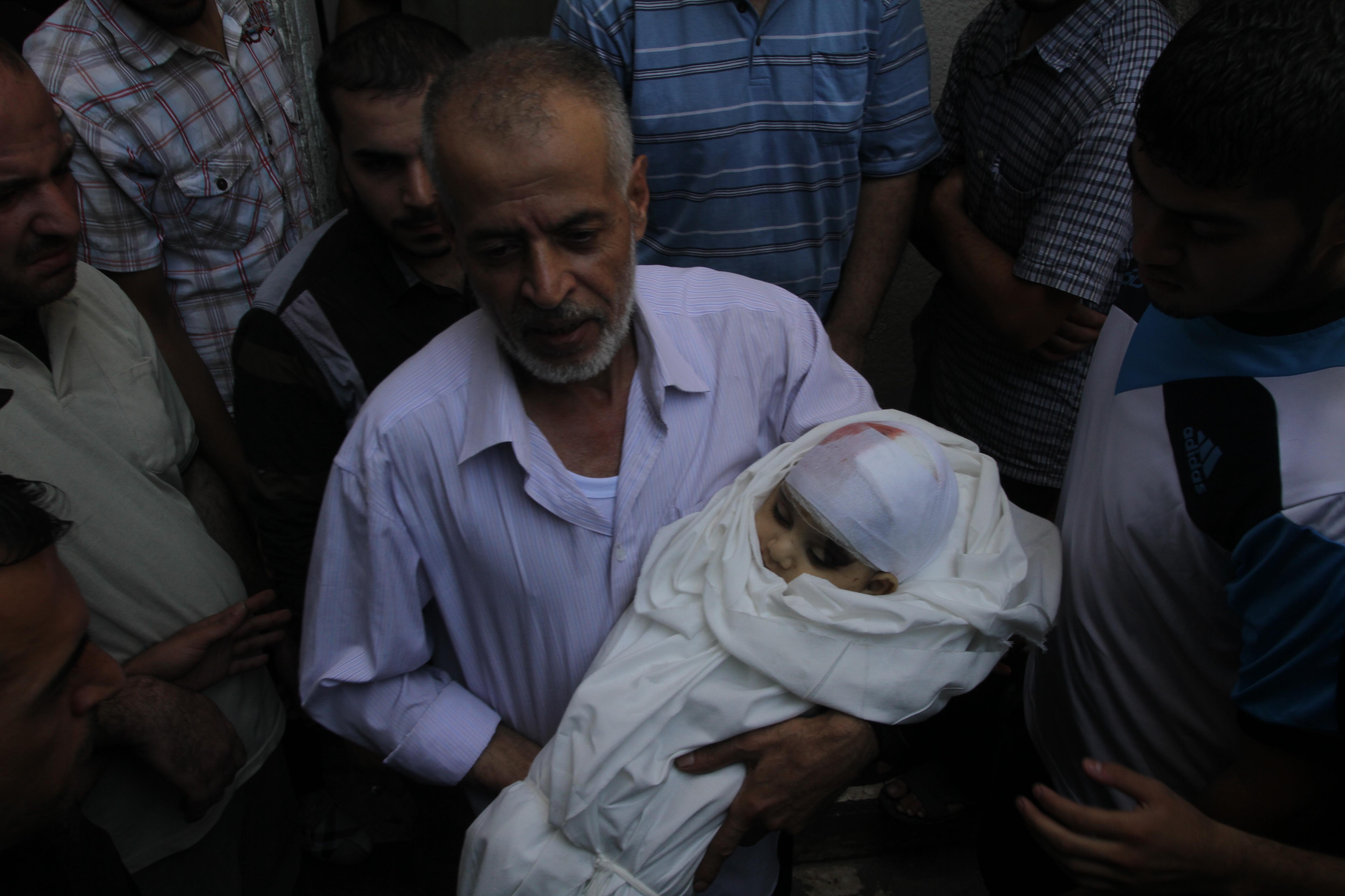 شيعت جماهير غفيرة من أبناء الشعب الفلسطيني في شمال قطاع غزة بعد ظهر الأربعاء جثمان زوجة قائد كتائب القسام محمد الضيف وابنه الطفل علي. وصلى هؤلاء صلاة الجنازة على الشهداء في مسجد الخلفاء الراشدين في بلدة جباليا شمال قطاع غزة، قبل أن يواروا الثرى. وخرقت "إسرائيل" تهدئة مؤقتة قبل ساعات من انتهائها وأغارت طائراتها على منزل عائلة الدلو بعدة صواريخ مما أدى إلى استشهاد ستة مواطنين بينهم زوجة القيادي الضيف (وداد) وابنه علي. واعترفت وسائل إعلام عبرية بأن القصف جاء كمحاولة لاغتيال قائد القسام، لكنها لم تشر أو تحدد مصيره فيما إذا كان القصف أدى لاستشهاده أم لا.