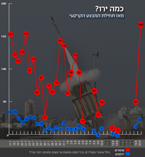 رسم بياني من صحيفة "يديعوت احرنوت" يظهر عدد الصواريخ المطلقة وتاريخ إطلاقها