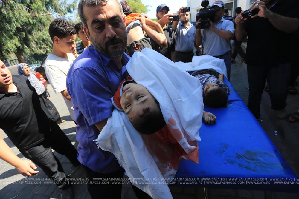 ارتكب جيش الاحتلال الإسرائيلي صباح الخميس جريمة اسرائيلية جديدة بحق مجموعة من الأطفال كانت تلهوا في شارع النفق شرق مدينة غزة. وأعلنت وزارة الصحة عن استشهاد الاطفال الثلاثة عبد الله طارق الريفي، عمر نصر الريفي، محمد زياد الريفي. وترصد عدسة وكالة "صفا" صور الشهداء وذويهم في مستشفى الشفاء.