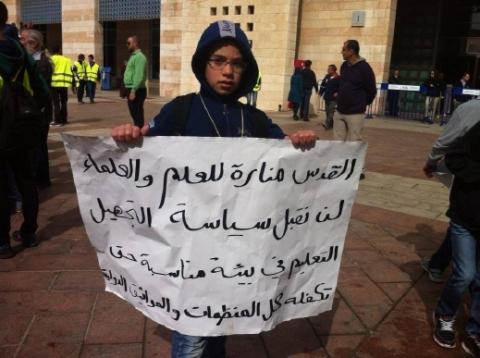 عمّ الإضراب صباح الاثنين مدارس حي جبل المكبر جنوب شرق القدس المحتلة، احتجاجًا على عدم استجابة بلدية الاحتلال الإسرائيلي لمطالب الأهالي بإقالة مديرة مدرسة ابتدائية للبنات متهمة "بقضايا فساد". وقال عضو لجنة أهالي أولياء أمور الطلبة حسن عبده لوكالة "صفا" إن وجهاء وأهالي الحي تفاجئوا صباح اليوم بوجود المديرة داخل المدرسة، وبناءً عليه قرروا إخلاء المدارس من الطلبة بدون أي ترتيب مسبق، مما أحدث ارباكًا شديدًا في العملية التعليمية. وأوضح أن وجهاء الحي قرروا عقد اجتماع مساء اليوم لمناقشة هذه القضية وإصدار قرار بشأنها، خاصة في ظل عدم استقرار الدارسة منذ بدء العام الدراسي، الأمر الذي قد يؤثر على الطلبة، مطالبًا بوجود حل سريع ينهي هذه الأزمة. وذكر أن ذلك يأتي في أعقاب اعتقال قوات الاحتلال فجر اليوم اثنين من لجنة أولياء أمور الطلبة في مدارس الحي خلال اقتحام منزليهما، وهما عمر ومحمود عويسات، وقد تم نقلهما إلى أحد مراكز التحقيق بالمدينة. وأضاف "توجهنا للعديد من المؤسسات الإسرائيلية لحل تلك القضية، ولكن دون جدوى"، مؤكدًا على ضرورة استجابة بلدية الاحتلال لمطالب الأهالي، حفاظًا على العملية التعليمية. بدوره، قال رئيس لجان اتحاد أولياء الأمور بالقدس عبد الكريم لافي لوكالة "صفا" إن كافة المدارس في القدس تعاني من نقص حاد في الغرف الصفية، وعدم وجود كادر كبير من المعلمين منذ سنوات، مبينًا أن قضية مديرة المدرسة زادت المعاناة. وأوضح أن عودة المديرة للمدرسة بحماية من شرطة الاحتلال في أول يوم من العام الدراسي أثار استياء وجهاء وأهالي حي جبل المكبر، ناهيك عن اعتقال الاحتلال لأعضاء من لجنة أولياء الأمور مثلما حدث فجر اليوم. وأشار إلى أن الاتحاد قرر عقد اجتماع طارئ اليوم لاتخاذ قرارات حاسمة بشأن تلك القضية، ومن الممكن الإعلان عن الإضراب الشامل في جميع مدارس القدس في حال عدم حل القضية، وتحقيق مطالب الأهالي. وكانت المدراس في حي جبل المكبر شهدت الثلاثاء الماضي إضرابًا شاملًا، احتجاجًا على اعتداء شرطة الاحتلال على الطلبة ولجان أولياء الأمور.