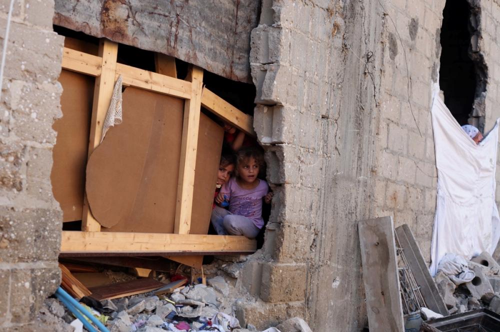 أطفال في احدى المنازل المتضررة من عدوان الاحتلال على القطاع