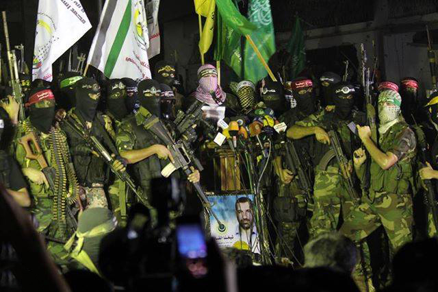 فصائل المقاومة خلال خطاب النصر فوق أنقاض منطقة الشجاعية