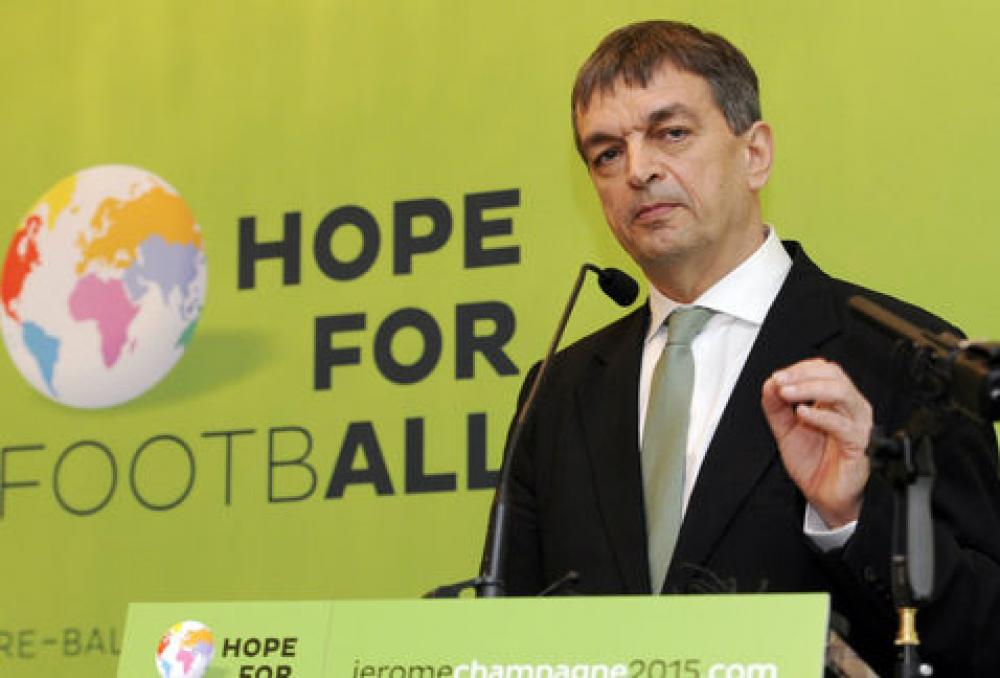 أعلن جيروم شامبين المسؤول السابق بالاتحاد الدولي لكرة القدم (الفيفا) رسمياً أنه سينافس سيب بلاتر الرئيس الحالي للفيفا في انتخابات رئاسة الاتحاد الدولي التي ستجري العام المقبل. وقال شامبين في خطاب نشر على موقع حملته على الانترنت: "يشرفني أن أبلغكم أنني أرسلت خطاباً للجنة الانتخابات التابعة للفيفا ورئيسها السيد دومينيكو سكالا أؤكد فيه نيتي خوض انتخابات رئاسة الاتحاد الدولي". وبذلك سيكون شامبين المنافس الوحيد لبلاتر على كرسي رئاسة الفيفا بعدما أعلن الأخير قبل أيام عزمه خوض السباق للمرة الخامسة على التوالي، علماً أنه يترأس الاتحاد الدولي لكرة القدم منذ عام 1998. وكانت تقارير تحدثت مطلع العام الحالي عن نية رئيس الاتحاد الأوروبي لكرة القدم ميشيل بلاتيني منافسة بلاتر، إلا أن أسطورة الكرة الفرنسية تراجع رسمياً عن ذلك، وأعلن الشهر الماضي أنه سيعمل على تجديد ولايته رئيساً لـ"يويفا" ولن ينافس بلاتر.