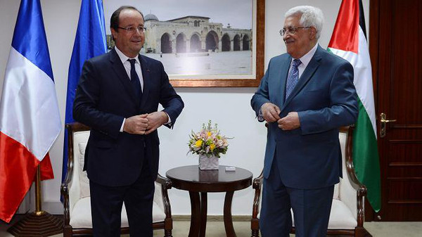 اجتمع الرئيس محمود عباس في قصر الإليزيه بالعاصمة باريس مساء الجمعة مع نظيره الفرنسي فرانسوا هولاند. وبحث الرئيسان في اجتماع مغلق المستجدات في الأرض الفلسطينية والمنطقة، وعملية السلام المتعثرة. ومن المقرر أن يتوجه عباس عقب اللقاء إلى نيويورك للقاء العديد من قادة العالم بهدف حشد التأييد الدولي للحل العادل للقضية الفلسطينية ويتوجها الرئيس بكلمة هامة أمام الجمعية العامة للأمم المتحدة الجمعة المقبلة. ووصف الناطق الرسمي باسم الرئاسة نبيل أبو ردينة الأسابيع المقبلة بأنها حاسمة بالنسبة للقضية الفلسطينية داخليا ودوليا سواء فيما يتعلق بإعادة اعمار قطاع غزة، أو إقامة الدولة الفلسطينية المستقلة. وقال : " لم يعد بالمستطاع الإبقاء على الوضع الراهن، وبالتالي فإن هذه الحركة السياسية النشطة هدفها الأساسي إسماع العالم بأنه آن الأوان لإحقاق الحقوق الوطنية للشعب الفلسطيني، وفي مقدمتها إقامة الدولة المستقلة ذات السيادة وعاصمتها القدس الشريف".