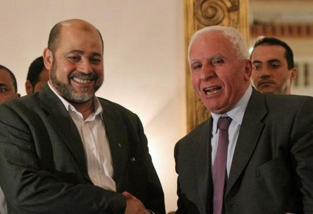 اتفقت حركتا حماس وفتح على البدء الفوري بتنفيذ بنود اتفاق المصالحة، الذي جرى التوقيع عليه في نيسان/أبريل الماضي، وتشكيل لجنة وطنية لمتابعة مسار اللجان المنبثقة عنها وتسهيل عمل حكومة التوافق. وأعلن نائب رئيس المكتب السياسي لحماس موسى أبو مرزوق ورئيس وفد فتح للمصالحة عزام الأحمد مساء الخميس في مؤتمر مشترك عقد في العاصمة المصرية القاهرة الاتفاق بين الوفدين على كافة القضايا الشائكة بينهما. وقال أبو مرزوق إن الاتفاق تضمن آليات تنص على سرعة عقد المجلس التشريعي ولجان الحريات والمصالحة المجتمعية، كما اتفق على طريقة لحل أزمة ملف رواتب الموظفين في غزة الذي يهم شريحة كبيرة من شعبنا الفلسطيني. وأشار إلى أن اللقاءات ناقشت تسهيل عمل حكومة التوافق وأعمال مؤتمر إعادة إعمار قطاع غزة وتقديم كل آليات إنجاحه، مؤكدا أن حكومة التوافق ستشرف على كافة المعابر مع القطاع وسيعود الموظفون إلى عملهم فيها. وأكد أبو مرزوق أن الاتفاق كان شاملا وكاملا وأن اللقاءات بين الوفدين كانت مهمة للغاية وتطلعت إلى كافة القضايا والمشاكل التي حالت دون الوصول إلى القضايا الشاملة وتم معالجتها بشكل كامل وشامل، لكنه استدرك: "نحن بانتظار التطبيق وسنظل على متابعة مباشرة". بدوره أكد الأحمد على أن الوفدين اتفقا على دعم التحرك الذي تقوم به السلطة الفلسطينية واستكمال انضمام فلسطين إلى المؤسسات الدولية والتوقيع على ميثاق روما الدولي. ولفت إلى أنه تم التوافق على إزالة كافة العقبات أمام حكومة التوافق وتشكيل لجنة متابعة من الحركتين وبقية فصائل العمل الوطني لمساندة الحكومة في تنفيذ مهامها وتوحيد كافة المؤسسات وحل قضايا الموظفين سواء من كانوا قبل الانقسام أو بعده. وتواصلت اللقاءات بين حركتي فتح وحماس بالقاهرة لليوم الثاني لبحث تنفيذ بنود اتفاق المصالحة، لحل كافة القضايا العالقة بينهما وتطبيق تنفيذ اتفاق المصالحة، الذي جرى التوقيع عليه في نيسان/أبريل الماضي بمخيم الشاطئ غرب غزة.