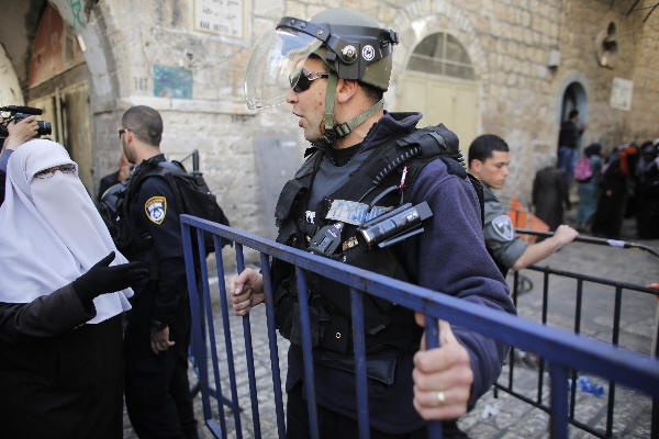 فرضت قوات الاحتلال الإسرائيلي قيودا مشددة على المصلين في المسجد الأقصى المبارك اليوم الجمعة، وعززت من تواجد قواتها بشكل مكثف في ازقة ومداخل القدس المحتلة. ومنعت شرطة الاحتلال المواطنين ممن تقل أعمارهم عن الخمسين عاماً من دخول القدس القديمة والتوجه الى المسجد الأقصى لأداء صلاة الجمعة. واضطر عشرات المقدسيين إلى صلاة الفجر في الشوارع والطرقات القريبة من محيط المسجد الاقصى المبارك. ونشرت قوات الاحتلال مئات العناصر من وحداتها الخاصة في شوارع وطرقات المدينة والبلدة القديمة، وسيّرت دوريات راجلة ومحمولة وخيّالة، فيما نصبت متاريس حديدية قرب بوابات القدس القديمة للتدقيق ببطاقات المواطنين، كما نصبت حواجز عسكرية وشُرطيّة في كافة الشوارع ومحاور الطرقات في المدينة. وتشهد المعابر والحواجز العسكرية الثابتة على المداخل الرئيسية لمدينة القدس إجراءات تفتيش مشددة للغاية، وتمنع كل المواطنين من أبناء محافظات الضفة من حملة التصاريح دخول القدس لأي سبب كان.