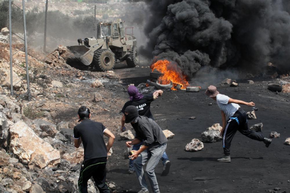 اندلعت ظهر الأربعاء مواجهات عنيفة في بلدة نعلين غرب مدينة رام الله بعد اقتحام قوات الاحتلال لمركز البلدة، حيث قامت قوة عسكرية باقتحام المحال التجارية. وأفاد مراسلنا أن عدد من الدوريات العسكرية اقتحمت البلدة من الناحية الشرقية، حيث اندلعت مواجهات عنيفة بين عشرات الشبان والجنود الذين ترجلوا من الدوريات وأطلقوا القنابل الغازية والرصاص المطاطي، فيما رشق الشبان الجنود بالحجارة والزجاجات الفارغة في محيط محطة المحروقات. وذكر بأن قوة من الجنود اقتحمت المحال التجارية على جانبي الشارع الرئيسي في البلدة وشرعت بالتحقيق مع أصحابها، علما بأن البلدة تضم مركزا تسويقيا لمنطقة غرب رام الله وعرب 48. وكانت قوات الاحتلال أقامت خلال الأيام الماضية برجا عسكريا إسمنتيا على تلة جبلية قبالة المدخل الشرقي، كما اعتقلت شابين من خلال قوات خاصة أحدهما جريح.