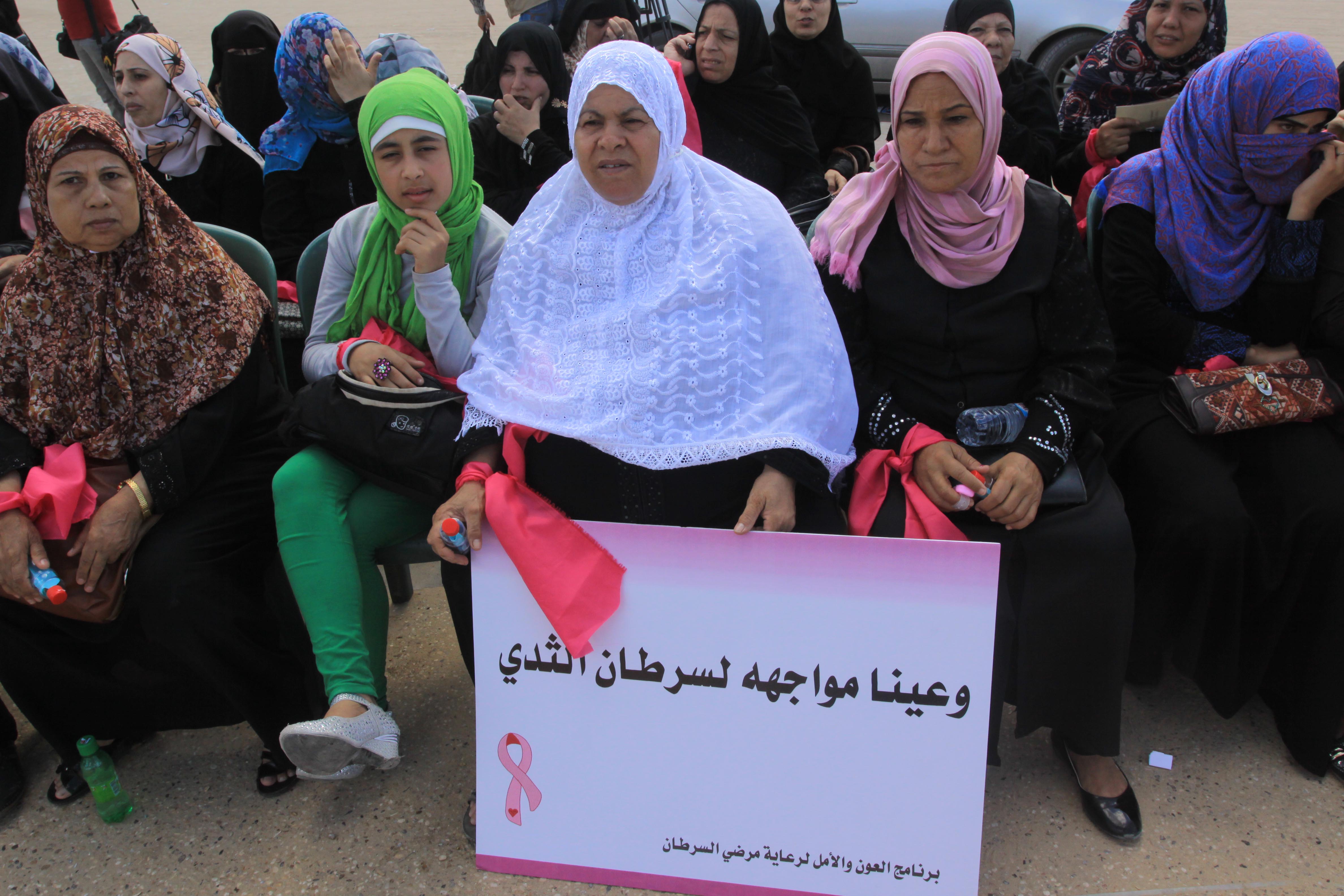 شاركت عشرات النساء المصابات بمرضى سرطان الثدي الأربعاء في فعاليات نظمها برنامج العون والأمل لرعاية مرضى السرطان في ميناء غزة البحري بعنوان "أكتوبر زهر لا تنسي تفحصي". وتأتي هذه الفعالية في الشهر العالمي لسرطان الثدي، وبهدف رفع مستوى الوعي بأهمية الفحص المبكر لسرطان الثدي، كونه يساهم بالشفاء بنسبة 95%. وطالب برنامج العون صناع القرار الفلسطينيين بوضع أولويات مرضى السرطان على قائمة اهتمامهم، وتيسير وتسهيل حياة المهمشين والفقراء من خلال توفير الأدوية غالية الثمن. وقال إننا ننظر بخطورة إلى تزايد أعداد المرضى وتدني ظروف معيشتهم والنقص الحاد في الأدوية، لافتًا إلى أنه يقدم خدماته لحوالي 1350 مريضًا بالسرطان، حيث أن نسبة المسجلين المرضى لدي البرنامج سجلت ارتفاعًا ملحوظًا منذ بداية العام 2014. وأشار إلى أن البرنامج يسجل أسبوعيًا عشر حالات سرطان جديدة على الأقل، مبينًا أن هذا الرقم يدعو للقلق، نظرًا لأن البرنامج لا يسجل كل الحالات في قطاع غزة، وأن معظم الحالات الجديدة المسجلة تتوزع بين سرطان الثدي لدى الإناث وسرطان الدم لدى الأطفال، والغدد اللمفاوية لدى الذكور. ولفت إلى أن السرطان هو المسبب الثاني للوفاة في فلسطين بعد أمراض القلب والأوعية الدموية، بعدما ظل السرطان لسنوات طويلة المسبب الثالث للوفيات، مبينًا أن الأعوام الأخيرة شهدت ارتفاعات متتالية في نسب وفيات الفلسطينيين نتيجة السرطان. وبين أن سرطان الثدي يأتي في المرتبة الأولى طبقًا لعدد الحالات المبلغ عنها في العام 2013 من السرطانات التي تصيب الإناث في فلسطين، وقد بلغت نسبتها 38% من مجموع الحالات. وتحدث عن المشاكل التي يواجهها المصابون بالسرطان، وتحديدًا النساء المصابات بسرطان الثدي، ومن أهمها النقص الحاد في أدوية السرطان، ما يعرض المرضى إلى مخاطر التراجع الصحي، معاناة المرضى في السفر والتنقل، وتأخر التحويلات الطبية، وفي حال إصدارها يتم إعطاء مواعيد بعيدة للمرضى مما يؤثر على حياتهم. وشدد على مطالب مرضى السرطان، داعيًا إلى إعفائهم من رسوم جوازات السفر، وتوفير وسائل نقل مجهزة لهم عبر معبري رفح وبيت حانون. وناشدت المشاركات المجتمع الدولي بمساندة ودعم البرامج التي تعني بمرضى السرطان الحكومية وغير الحكومية، نظرًا لأن هناك تجاهلًا ملحوظًا من قبل المؤسسات الدولية بهذا الخصوص. ودعت المجتمع المحلي الذي لم يتوق يومًا عن دعم الفقراء من مرضى السرطان بمبادرات فردية أحدثت تغييرًا في حياتهم، إلى الاستمرار في التضامن معهم، ودعمهم نفسيًا ومعنويًا وماديًا. وطالبت بتكثيف الحملات الإعلامية لتسليط الضوء على المرض ومخاطره، ودعوة القطاع الخاص إلى تبني مبادرات لدعم مرضى السرطان.