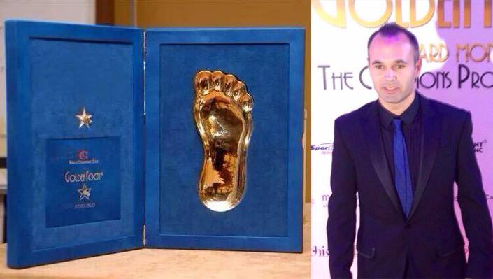 نال لاعب وسط فريق برشلونة ومنتخب إسبانيا أندريس إنييستا جائزة القدم الذهبية المقدمة لأفضل لاعب في العالم فوق 29 عاماً في حفل أقيم مساء الاثنين في إمارة موناكو الفرنسية. وتفوق إنييستا على كل من البرتغالي كريستيانو رونالدو مهاجم ريال مدريد، وواين روني مهاجم مانشستر يونايتد الإنجليزي، والحارس الألماني مانويل نوير لاعب بايرن ميونيخ الألماني، وأندريا بيرلو صانع ألعاب يوفنتوس الإيطالي، والفرنسي فرانك ريبري لاعب بايرن ميونيخ، والإيفواري يايا توريه لاعب وسط مانشستر سيتي، والفرنسي تيري هنري مهاجم ريد بولز الأمريكي، والمهاجمة البرازيلية مارتا فييرا دا سيلفا. وأشارت صحيفة آس الإسبانية إلى أن إنييستا توجه إلى موناكو بصحبة زوجته آنا أورتيز، وأندوني زوبيزاريتا المدير الرياضي لنادي برشلونة، ووكيل أعمال اللاعب رامون سوستريس. وأضافت الصحيفة أن إنييستا سيتوجه عقب الحفل للانضمام مجدداً لزملائه الدوليين في برشلونة جيرار بيكيه، ومارك بارترا، وجوردي ألبا، وسيرجيو بوسكيتس، وبيدرو رودريجيز الذين خاضوا مباراتين مع منتخب إسبانيا أمام سلوفاكيا ولوكسمبورج في التصفيات المؤهلة لكأس أمم أوروبا "يورو 2016" في فرنسا.
