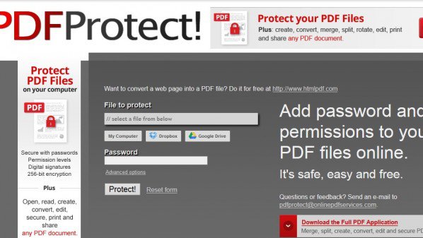 حماية ملفات PDF النصية أمرٌ مهم في بعض الأحيان، وخاصةً عند تبادلها عبر الإنترنت في حال كانت تحتوي معلومات مهمة، ولكن الأمر يتطلب عادةً وجود برامج من أجل إضافة كلمة مرور لحماية الملف. ولكن موقع pdfprotect.net يقدم هذا الأمر بسهولة ودون الحاجة لأي برامج تُذكر، يكفي اختيار الملف المراد حمايته من على جهاز المستخدم أو على حساب دروب بوكس أو جوجل درايف، وبعد ذلك كتابة كلمة المرور مع اختيار اعدادات متقدمة إن تطلب الأمر ذلك. ومن ثم يتم الضغط على زر Protect ليقوم الموقع بإضافة كلمة المرور إلى ملف PDF، وعند الانتهاء يُظهر للمستخدم خيار تنزيل الملف الجديد الذي تم حمايته، وبذلك يكون الملف قد وضع له كلمة مرور عن طريق الموقع.