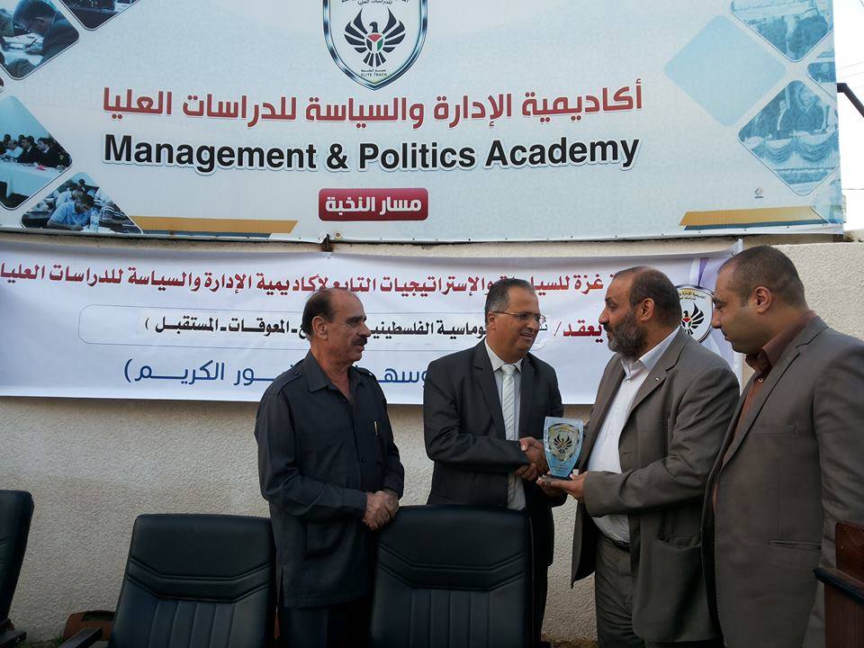 عقدت أكاديمية الإدارة والسياسة في غزة الخميس ندوة سياسية مقارنة بين الدبلوماسي الفلسطيني والدبلوماسي الإسرائيلي والحديث عن عمل الدبلوماسي الفلسطيني في إطار المفاوضات الأخيرة حول العدوان الإسرائيلي على غزة. كما تناولت الندوة الحديث عن العمل الدبلوماسي الفلسطيني من واقع الخبرة الشخصية للسفير السفير الفلسطيني الأسبق بالسودان عمر شلايل والنصائح الواجب اتباعها من قبل الدبلوماسي للنهوض بالعمل الدبلوماسي مستقبلاً. وحضر الندوة طلاب ومدرسي الأكاديمية وشخصيات قيادية فلسطينية وعلى رأسهم غازي حمد - كيل وزارة الخارجية الفلسطينية.