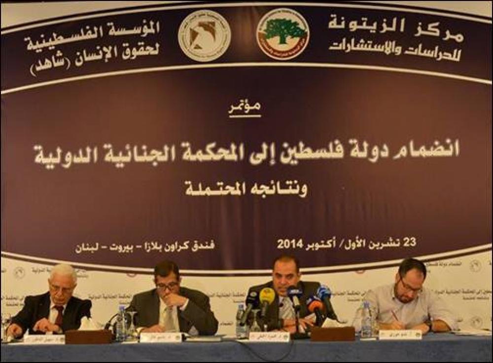 عقد مركز الزيتونة للدراسات والاستشارات والمؤسسة الفلسطينية لحقوق الإنسان (شاهد) الخميس مؤتمراً علمياً تحت عنوان "انضمام دولة فلسطين إلى المحكمة الجنائية الدولية ونتائجه المحتملة" في فندق كراون بلازا في بيروت. وشارك في المؤتمر، الذي توزعت أعماله على ثلاث جلسات نخبة من القانونيين والمتخصصين والمهتمين بالشأن الفلسطيني، ناقشوا خلالها انضمام دولة فلسطين لنظام روما، ومحاكمة الكيان الإسرائيلي وقيادته، والنتائج المتوقعة لتوجه فلسطين للمحكمة الجنائية الدولية. وتناول المشاركون بالنقاش التوصيف القانوني للأراضي الفلسطينية، ودور المؤسسات الحقوقية الدولية ودورها في إعمال العدالة الدولية، والانتهاكات الإسرائيلية في العدوان على غزة وتصنيفها حسب القانون الدولي. وأشار مدير عام مركز الزيتونة محسن صالح إلى أهمية وضع النقاط على الحروف، وتحديد المسارات الصحيحة للتعامل مع المحكمة الجنائية الدولية بشكل خاص، والمؤسسات الدولية بشكل عام، وخدمة صانع القرار الفلسطيني والعربي. وقال: "عانينا بما فيه الكفاية من عدم الاختصاص، وضعف الخبرة والكفاءة وسوء التسويق"، ولفت إلى أن البعض رفع أكثر من 280 قضية إلى محاكم دولية أو الدول في أوروبا الغربية ضدّ الكيان الإسرائيلي، أغلبيتها الساحقة تمّ ردّها بسبب عدم الاختصاص، أو عدم استكمال الإجراءات والأوراق اللازمة. وشدد المشاركون على ضرورة إيلاء مثل هذه القضايا أهمية في الدراسات العلمية. مشيرين إلى أن الكيان الإسرائيلي ليس جمعية خيرية، وسينتقل من صراع إلى صراع، ولا مناص عن المواجهة بأساليب متعددة لانتزاع الحقوق الفلسطينية. وأكدوا أن الانضمام إلى محكمة الجنايات الدولية يحتاج لقرار سياسي فلسطيني، وشبكة علاقات وموازين قوى، ولا مناص عن الوحدة السياسية الفلسطينية التي تؤسس لإنجاز سياسي وقانوني.