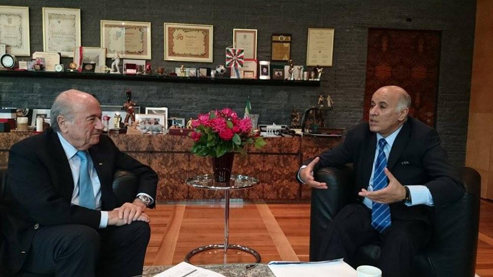 قال الاتحاد الفلسطيني لكرة القدم إن رئيسه جبريل الرجوب عقد اجتماعاً مع رئيس الاتحاد الدولي للعبة جوزيف بلاتر في مقر "الفيفا" بمدينة زيوريخ السويسرية على هامش اجتماعات لجنة المسؤولية الاجتماعية بالاتحاد الدولي، وذلك في بيان رسمي صدر عنه السبت. وبحسب البيان فإن الرجوب قدم لبلاتر ملفاً كاملاً عن مجمل الجرائم التي ارتكبها الاحتلال الإسرائيلي خلال الحرب الأخيرة على قطاع غزة، بالإضافة لتقديمه شرحاً كاملاً عن مجمل التطورات التي وصلت إليها الكرة الفلسطينية على صعيد انتظام المسابقات، وإقامة المنشآت الرياضية والاستمرار في إقامة برامج تطوير الكوادر الرياضية وتنظيم الدورات المتخصصة له من أجل مواكبته لآخر التطورات التكنولوجية التي يستخدمها القائمون على اللعبة في العالم. وأكد البيان تأييد فلسطين لبلاتر مرشحاً لرئاسة الفيفا يعتبر موقفاً معلناً من أجل فوز بلاتر بولاية جديدة من أجل الاستمرار في تطوير كرة القدم العالمية، بالإضافة إلى جهوده الدائمة في الوقوف لجانب الرياضة الفلسطينية والعمل على إيجاد حل جذري لمشكلاتها من منطلق حرصه والتزامه الثابت اتجاه فلسطين باعتبارها عضواً فاعلاً في الاتحاد الدولي للعبة. من جانبه، أعرب بلاتر عن تعاطفه الكامل مع الرياضيين الأبرياء الذين قضوا خلال الحرب على غزة، مجدداً إدانته لما يتعرض له عناصر اللعبة في فلسطين من ممارسات تخالف كافة القوانين الرياضية الدولية. وجدد بلاتر تعهده بالعمل على مساعدة المؤسسة الرياضية الفلسطينية والعمل على إعادة تأهيل الملاعب والمشاريع الرياضية في غزة من خلال الموافقة على تعشيب 20 ملعباً جديداً، والعمل على استكمال مشروع إصلاح ملعب فلسطين، وإرسال وفد من "الفيفا" إلى القطاع بداية شهر ديسمبر المقبل. يشار إلى أن بلاتر أعلن مؤخراً نيته الترشح لولاية خامسة رئيساً للفيفا، عاماً بأنه تولى رئاسة الاتحاد الدولي منذ عام 1998.