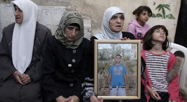 ذوو الشهيد يحملون صورة له عندما كان في الأسر