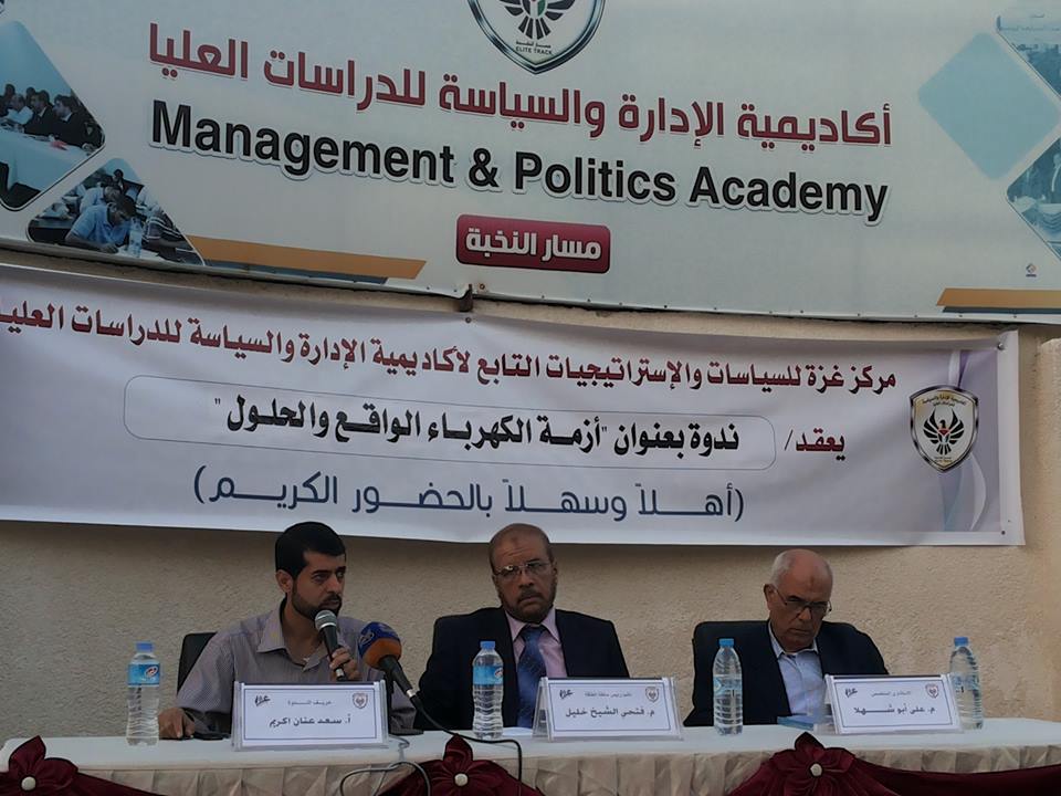 عقد مركز غزة للسياسات والاستراتيجيات التابع لأكاديمية الإدارة والسياسة الأربعاء ندوة لمناقشة واقع أزمة التيار الكهربائي في قطاع غزة والحلول المقترحة لإنهائها. وحضر الندوة التي عقدت بعنوان: "أزمة الكهرباء.. الواقع والحلول" استشاري المشاريع وخبير الاقتصادي علي أبو شهلا، ونائب رئيس سلطة الطاقة فتحي الشيخ خليل، ورئيس الأكاديمية محمد المدهون، والنائب الأكاديمي أحمد الوادية، ومدير الطاقة المتجددة بسلطة الطاقة عوني نعيم، ونخبة من باحثي ومحاضري الأكاديمية وعدد من المخاتير والوجهاء. وربط أبو شهلا انتهاء أزمة الكهرباء في غزة برفع الحصار بشكل كامل عن القطاع، لكنه اعتبر أن الأزمة سياسية بامتياز، داعيًا للبحث عن بدائل أفضل لحل الأزمة كاستثمار الطاقة الشمسية، وغيرها. [title]أربعة حلول[/title] وأوضح أن رئيس سلطة الطاقة عمر كتانة طرح أربعة حلول لإنهاء أزمة التيار الكهربائي بغزة، لكن قال إن "أحلاهم مر". وبيّن أن من بين الحلول الباخرة التركية، والسيارة الطويلة "التريلا" التي تولد الكهرباء، لكنه أوضح أن التكلفة جراء هاتين الطريقتين ستكون مضاعفة على المواطنين، وسيصبح كيلو الكهرباء الواحد بنحو 2 شيكل. أما الطريقة الثالثة فهي استمرار العمل بالمحطة الحالية للتوليد، والتي، وفق أبو شهلا، تشكل عبئًا على الشعب الفلسطيني لأن اتفاقية عملها تنص على دفع مبلغ شهري للشركة سواء عملت أو لا، بينما تتمثل الطريقة الرابعة باستيراد الكهرباء من الكيان الإسرائيلي، "لكن ذلك يبقى من سلطة احتلال". وأشار في هذا الصدد، إلى أن السلطة الفلسطينية اتفقت مع سلطات الاحتلال على إمداد القطاع بالكهرباء، ودفعت لها خمسة ملايين دولار، لكن لم يتم استكمال هذا الأمر بسبب العدوان الإسرائيل على غزة، فيما تماطل "إسرائيل" بذلك حتى الآن. وفي السياق، قال استشاري المشاريع إن الخطة التي شارك بإعدادها مع مؤسسة "بكدار" الدولية لتنمية غزة وإعمارها أشمل من خطة الحكومة الفلسطينية، لأنها تشمل المطار والميناء ومحطة لتحلية المياه. [title]حل جزء من الأزمة[/title] ومن جانبه، تحدث الشيخ خليل عن أن أزمة الكهرباء في القطاع أزمة تراكمية، وتقابلها حلول سريعة وجزئية، مشيرًا إلى أن برنامج وصل الكهرباء لست ساعات وفصلها لنفس المدة "جاء نتيجة قلة الامكانات والتحديات التي نواجهها". وأضاف "أن الطاقة التي نوفرها هي 35% من الكمية التي يحتاجها القطاع". وأوضح أن سلطة الطاقة نفذت سياسيات جديدة للإسهام في حل جزء من الأزمة، والتي تمثلت بتركيب عدادات الدفع المسبق، وحملات التسديد الآلي، إذ وصلت نسبة التحصيل من المواطنين نحو 30 مليون شيكل "ما لفت انتباه المانحين وعزز ثقتهم بتقديم مساهمات للعمل على حل الأزمة بشكل أكبر". وفيما يتعلق بالكهرباء القادمة من مصر، لفت إلى أن الشركة لا تستطيع توزيع أي كمية منها خارج مدينة رفح بسبب ضعف جودتها التي تصل إلى 130 فولت من أصل 230 فولت. وبيّن أن العدوان الإسرائيلي الأخيرة على غزة دمّر الخطوط العشرة التي تغذ القطاع من الكيان الإسرائيلي سيما في مناطق شرق غزة، مشيرًا إلى إعادة شركة التوزيع التيار الكهربائي دون إصلاح كاف لخطوط الشبكة، "وهذا ينذر بكارثة على السكان قد تحدث في فصل الشتاء". وقال إن الحل الأمثل للحد من أزمة الكهرباء هو تحمل السلطة الفلسطينية وحكومة التوافق مسئولياتها كاملة بإدخال الوقد اللازم دون ضريبة أو العمل على تجديد المنحة القطرية أو توفير منحة أخرى من أي جهة دولية. وأضاف أن "البدائل الأربعة المطروحة لحل الأزمة لا تناسب مع واقعنا وإمكاناتنا إذا لم تكن مدعومة ومتفق على تمويلها"، مشيرًا إلى أن تقدم بخطة لمجلس الوزراء من أجل حل الأزمة "لكن للأسف لم يتم التعاطي معها حتى الآن".