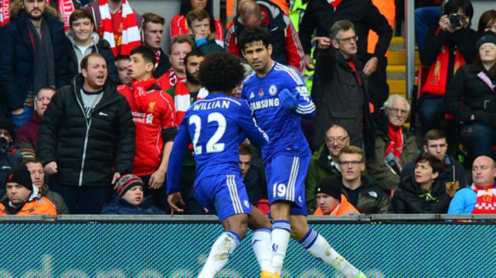 انتزع فريق تشيلسي فوزاً غالياً من ليفربول بهدفين مقابل هدف واحد في المباراة التي جرت على ملعب "أنفيلد" مساء السبت, ضمن منافسات الأسبوع الحادي عشر من الدوري الإنجليزي الممتاز لكرة القدم. ورغم أن "الريدز" تقدم بهدف عبر إيمري تشان في الدقيقة التاسعة, إلا أن "البلوز" قلب الطاولة بهدفين عن طريق جاري كاهيل بالدقيقة 14, ودييجو كوستا في الدقيقة 67. وبهذا الفوز واصل "البلوز" الانفراد بالصدارة برصيد 29 نقطة, في حين تجمد رصيد "الريدز" عند 14 نقطة في المركز الثامن. بدوره، أفلت مانشستر سيتي من الهزيمة أمام مضيفه كوينز بارك رينجرز، وتعادل الفريقان بهدفين لكل منهما في مباراة سريعة ومليئة بالفرص الضائعة والأخطاء التحكيمية المثيرة. وتقدم كوينز بارك عبر هدافه تشارلي أوستين في الدقيقة 21، ثم أدرك أجويرو التعادل بالدقيقة 32، قبل أن يعاود أصحاب الأرض التفوق مجدداً بهدف ثان سجله المدافع الأرجنتيني مارتن ديميكليس بالخطأ في مرماه بالدقيقة 76، قبل أن ينقذ أجويرو فريقه من الخسارة بهدف التعادل الثاني في الدقيقة 83. ووضع هذا التعادل مان سيتي في المركز الثالث برصيد 21 نقطة، بعيداً عن تشيلسي المتصدر بـ 29 نقطة، بينما استمر بارك رينجرز في منطقة الخطر، حيث يحتل المركز التاسع عشر وقبل الأخير برصيد 8 نقاط. واستعاد مانشستر يونايتد نغمة الانتصارات بفوز صعب على ضيفه كريستال بالاس بهدف دون رد، وكسر "الشياطين الحمر" صيامهم عن الفوز منذ مباراة إيفرتون قبل شهر في الجولة السابعة، والتي أعقبها تعادلين امام وست بروميتش وتشيلسي وخسارة امام مانشستر سيتي في الديربي. ورفع فريق المدرب الهولندي لويس فان جال رصيده الى 16 نقطة ليرتقي للمركز السادس، أما كريستال بالاس فلا يزال يعاني في صراع القاع، حيث يملك تسع نقاط فقط في المركز الـ17 على حافة الهبوط. وسجل هدف المانيو الوحيد اللاعب الإسباني خوان ماتا من تصويبة قوية هيأها له الأرجنتيني أنخل دي ماريا في الدقيقة 67. في المقابل، واصل ساوثامبتون الضغط على المتصدر تشيلسي وأعاد الفارق بينهما الى أربع نقاط بفوزه على ضيفه ليستر سيتي بهدفين دون رد. وتألق الايرلندي شين لوك موقعاً على ثنائية فريق المدرب الهولندي رونالد كومان في توقيت متأخر ليقتنص النقطة 25، أما ليستر سيتي فاكتفى بنقاطه التسع في المركز 18. وتعادل وست هام سلبياً مع زائره أستون فيلا ليظل المضيف في المركز الرابع برصيد 18 نقطة، نظير 11 لضيفه في المركز 16. وحقق بيرنلي فوزه الأول في البطولة على حساب هال سيتي بهدف نظيف سجله أشلي بارنس، لكن الفريق لم يترك المركز الأخير بعد الحصول على النقطة السابعة، مقابل 11 نقطة "للنمور" في المرتبة 14.