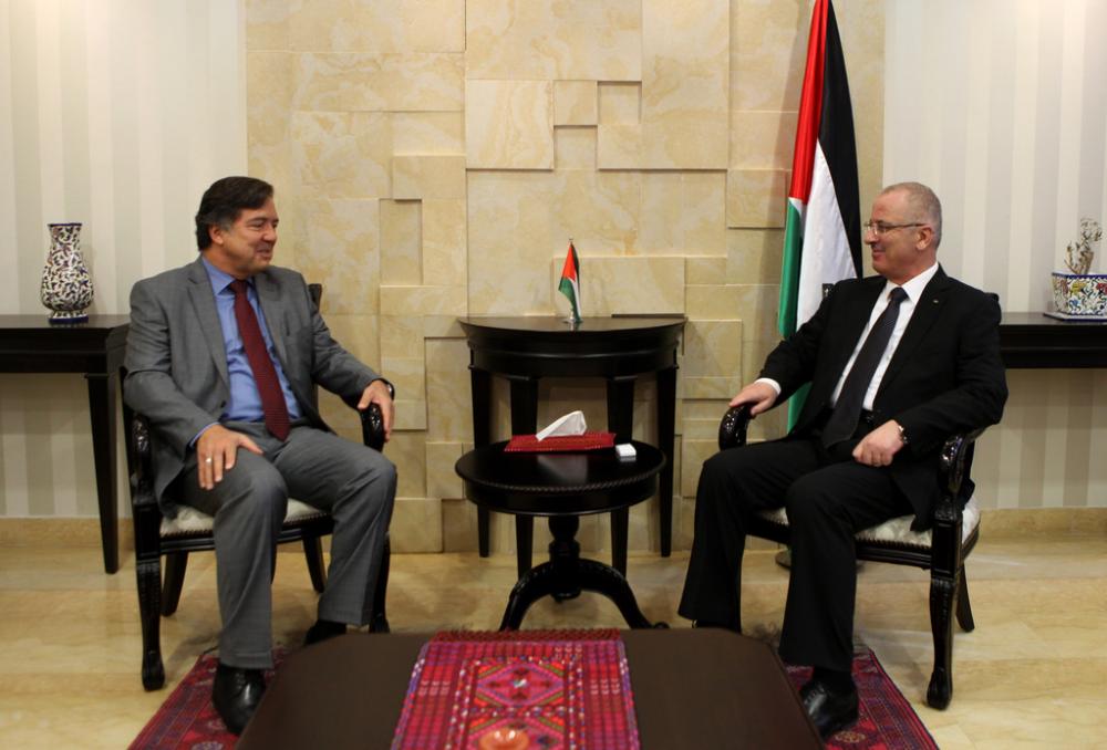 أطلع رئيس الوزراء رامي الحمد الله الأربعاء السفير البرازيلي لدى فلسطين باولو روبيرتو على آخر تطورات الوضع السياسي، وعملية إعادة إعمار قطاع غزة، وكذلك الانتهاكات الإسرائيلية المستمرة في مختلف المناطق، والتي كان آخرها حرق مسجد في قرية المغير غرب رام الله. وقال الحمد الله خلال اللقاء إن العلاقة التي تربطنا مع البرازيل علاقة صداقة تاريخية، ونقدر الجهود البرازيلية المبذولة في دعم صمود أهلنا في قطاع غزة من خلال تنفيذ العديد من المشاريع هناك سواء أكان بترميم المباني المدمرة أم بتنفيذ المشاريع التنموية'. وناقش مع السفير آخر تطورات المصالحة الفلسطينية وإنهاء الانقسام، مؤكدًا التزام حكومة الوفاق الوطني في المضي قدمًا بهذه الخطوة، نظرًا لأهميتها في تأسيس الدولة الفلسطينية. كما أطلعه على سير عمل اللجنة الإدارية والقانونية التي تبحث في أوضاع الموظفين المدنيين في القطاع. بدوره، أطلع السفير البرازيلي، الحمد الله على المشاريع التي تنفذها حكومته في مختلف المحافظات الفلسطينية، مؤكدًا التزام حكومته في الاستمرار بدعم فلسطين ماليًا وسياسيًا.
