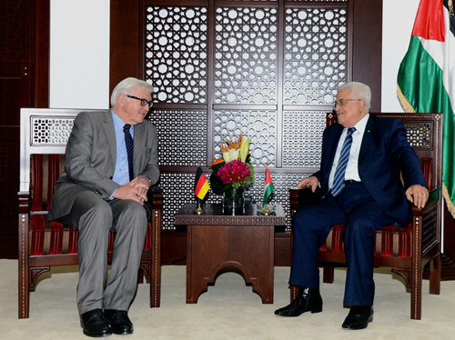 الرئيس محمود عباس اثناء لقاء وزير الخارجية الالماني فرانك شتاينماير