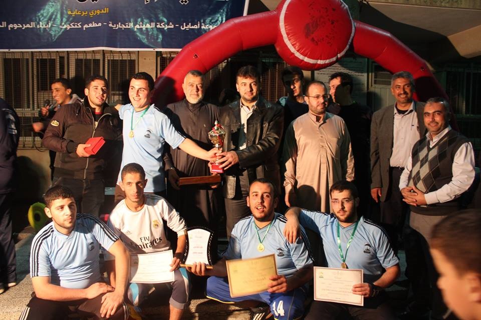 اخُتتمت في مدينة غزة منافسات بطولة الشهيد "إسماعيل العكلوك" لخماسيات كرة القدم التي نظمتها المرحلة الجامعية بمسجد أبي أيوب الأنصاري، بمشاركة ممثلين عن الشركات الراعية، وذوي الشهيد، ولفيف من الجماهير، والمشاركين. وحظيت البطولة برعاية شركة أصايل للدعاية والإعلان، ومطعم كتكوت، وشركة الهيثم التجارية، وأبناء المرحوم الحاج فضل اليازجي، وقدمت خلالها جوائز نوعية للمشاركين في بداية الدوري، ممثلة بزي رياضي لكل فريق، وجوائز يومية طيلة منافسات الدوري، فضلاً عن رعايتها للحفل الختامي الذي تم فيه تكريم الفرق الفائزة بالمراكز الأولى، واللاعبين، واللجان المنظمة. وحضر ممثلو أسرة مسجد أبي أيوب الأنصاري، حمدي الدلو، ونبيل قنيطة، ووسام ساق الله، وجميل عوض الله البطولة، وأثنوا على جهود اللجان المنظمة لها. وقال الدلو: "إن هدف البطولة تعزيز الروح الرياضية بين الفرق المشاركة وزيادة روابط الأخوة والمحبة بين اللاعبين"، لافتاً إلى أن الهدف ليس الفوز في البطولة بقدر الحرص على تقوية الروابط الاجتماعية. من جانبه، أكد مسؤول المرحلة الجامعية بالمسجد محمد المخللاتي أن البطولة حققت أهدافها، وعززت روح التعاون والعمل بروح الفريق الواحد، مشيداً بدور اللاعبين والتزامهم، والراعية المتميزة من الشركات التجارية. وشارك في البطولة 8 فرق وهي: طوباس، وقيسارية، والطيرة، وبربرة، وصفد، ويطا، وحمامة، والظاهرية، ولعبت بنظام الدوري وتأهلت 4 فرق للدور نصف النهائي. وتأهل لنهائي البطولة فريقا يطا وقيسارية في مباراة مثيرة انتهت بالتعادل السلبي، ليفوز قيسارية بركلات الترجيح 4 - 3، ويحصل على لقب المركز الأول، تاركاً المركز الثاني ليطا، فيما حل صفد ثالثاً بعد فوزه على فريق بربرة بثلاثية نظيفة. وحصل اللاعب محمود أبو دلو على لقب أفضل لاعب وهداف البطولة، فيما توج أنس اليازجي بجائزة أفضل حارس مرمى، وضم طاقم التحكيم: محمود الخالدي، وعلي أبو الخير، ومهند أبو شمالة، ومصطفى برغوت. يشار إلى أن مراسم الحفل شهدت أيضاً تكريم فريق الشهيد أحمد ياسين لفوزه ببطولة العصف المأكول للساحات الشعبية على مستوى غرب مدينة غزة.